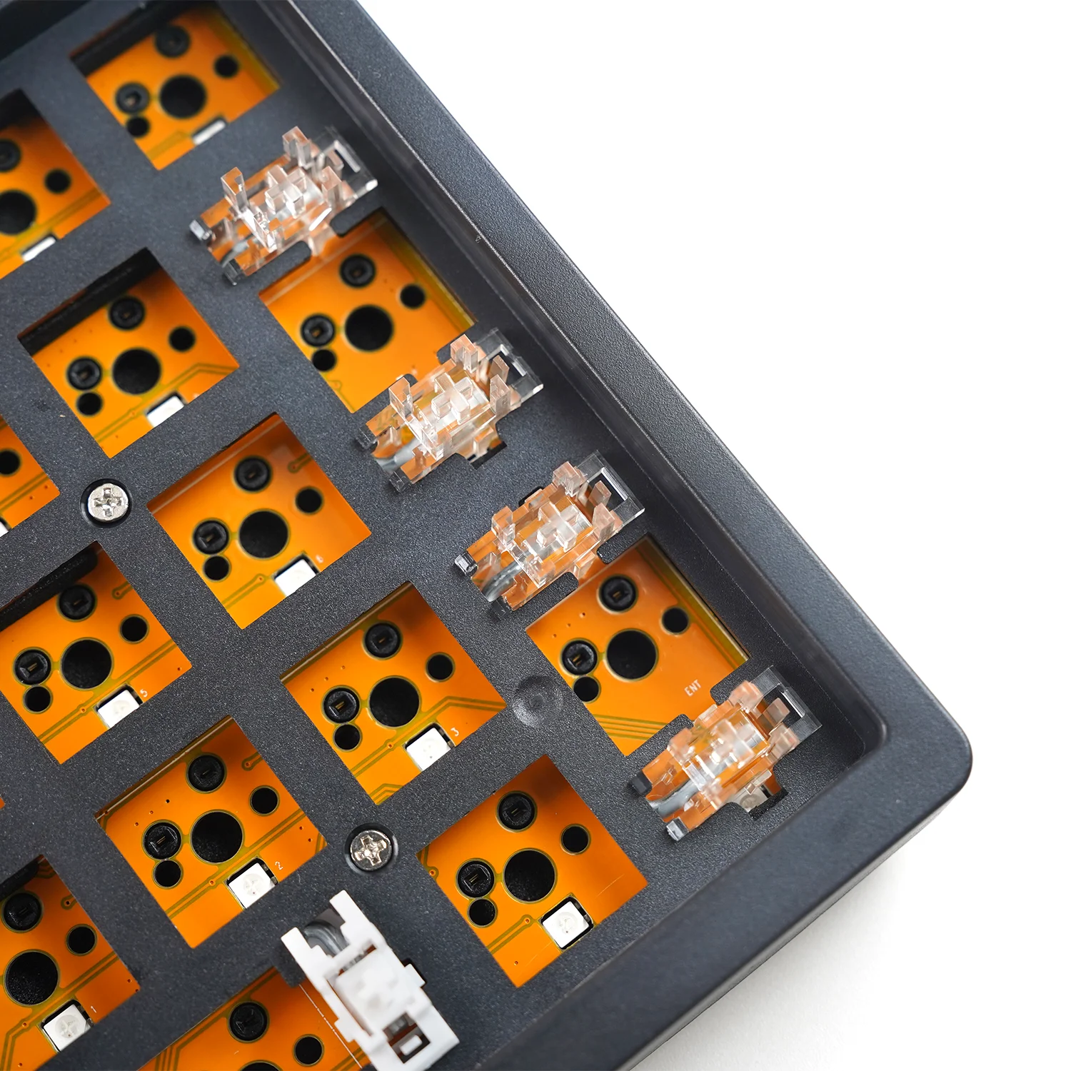 60% layout with 61 essential keys, striking an ideal balance between minimalistic design and full functionality. Hot-swap PCB allows you to replace 3 pins/5 pins switches freely without soldering issue. Enjoy the fun of making your own unique keyboard.prelubed and upgraded stablizer make your stroke more pure without any noise.