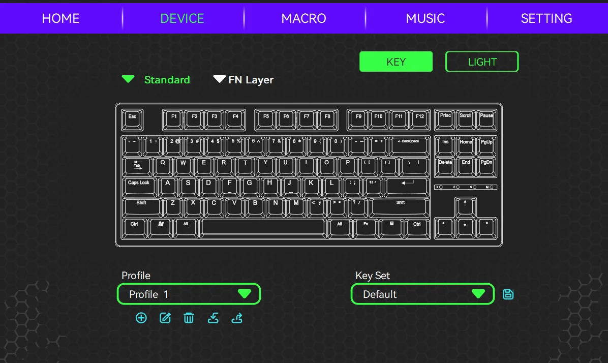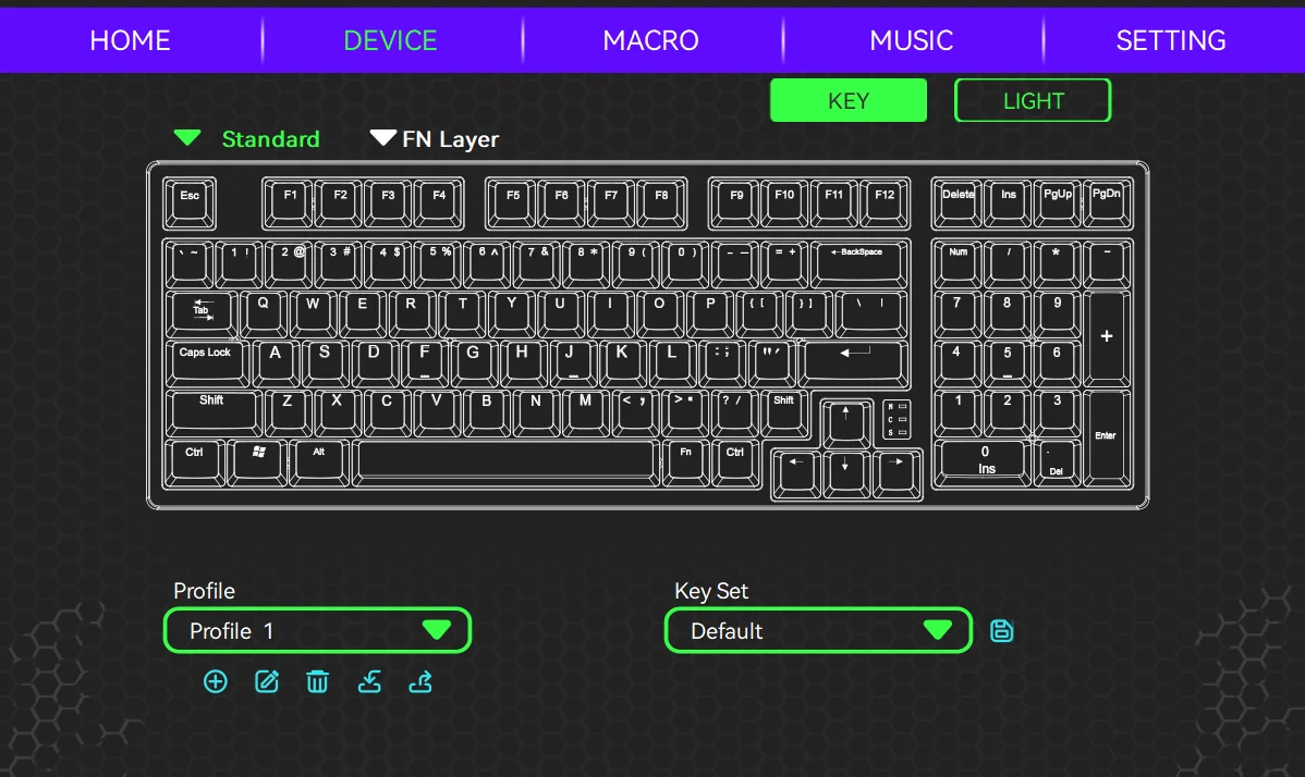 The Keyboard adopts RGB flow light design with multi different modes, which is beautiful and generous.you can customize light in the driver or by combo key.(this is kit only,below keyboard is just for demo show)