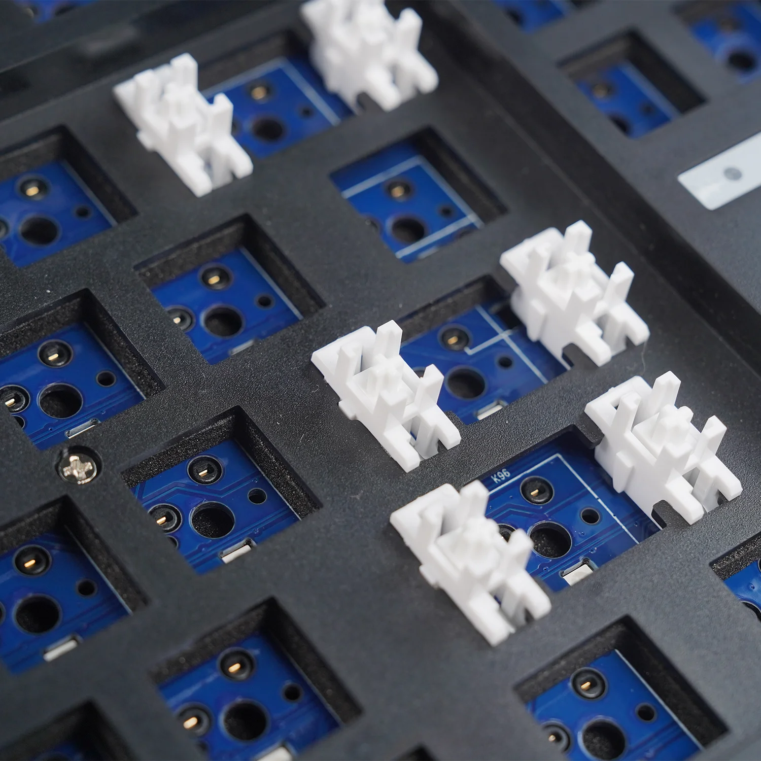 65% layout with 68 essential keys, striking an ideal balance between minimalistic design and full functionality. Hot-swap PCB allows you to replace 3 pins/5 pins switches freely without soldering issue. Enjoy the fun of making your own unique keyboard.prelubed and upgraded stablizer make your stroke more pure without any noise.