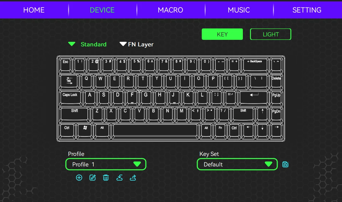 The Keyboard adopts RGB flow light design with multi different modes, which is beautiful and generous.you can customize light in the driver or by combo key.(this is kit only,below keyboard is just for demo show)