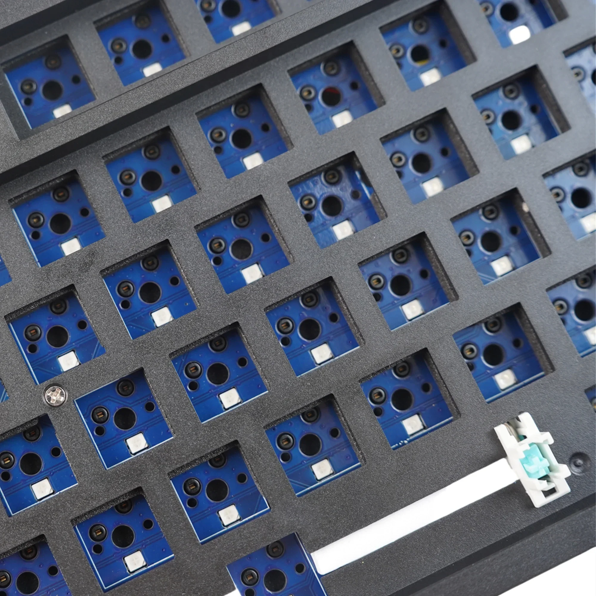 60% layout with 61 essential keys, striking an ideal balance between minimalistic design and full functionality. Hot-swap PCB allows you to replace 3 pins/5 pins switches freely without soldering issue. Enjoy the fun of making your own unique keyboard.prelubed and upgraded stablizer make your stroke more pure without any noise.