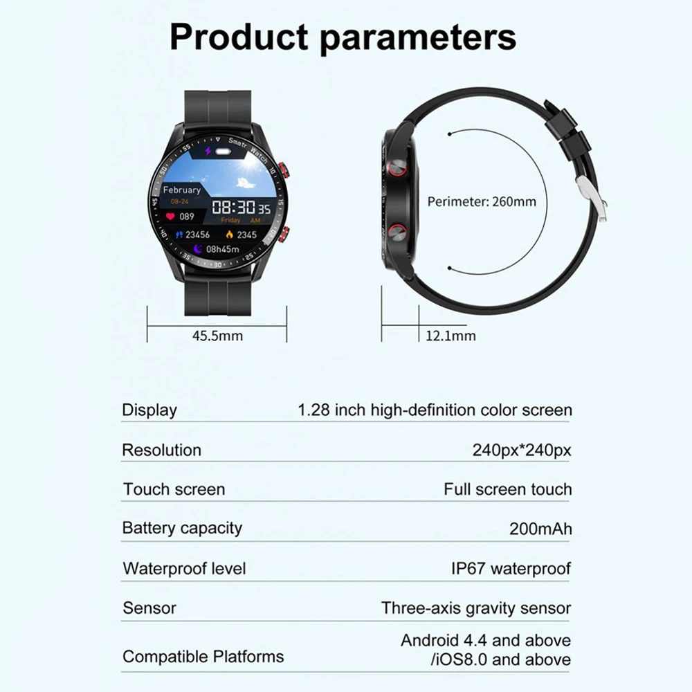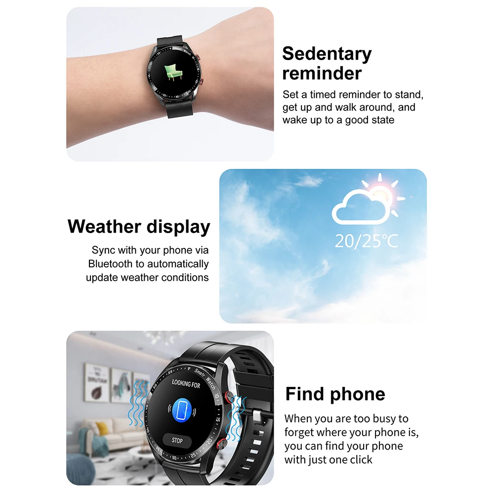 5. Este reloj inteligente tiene funciones como llamada BT, música BT, fotografía remota, múltiples modos de ejercicio, medición de frecuencia cardíaca en tiempo real, monitoreo del sueño, conteo de pasos, recordatorio de información, recordatorio de sedentarismo, informe meteorológico, etc.