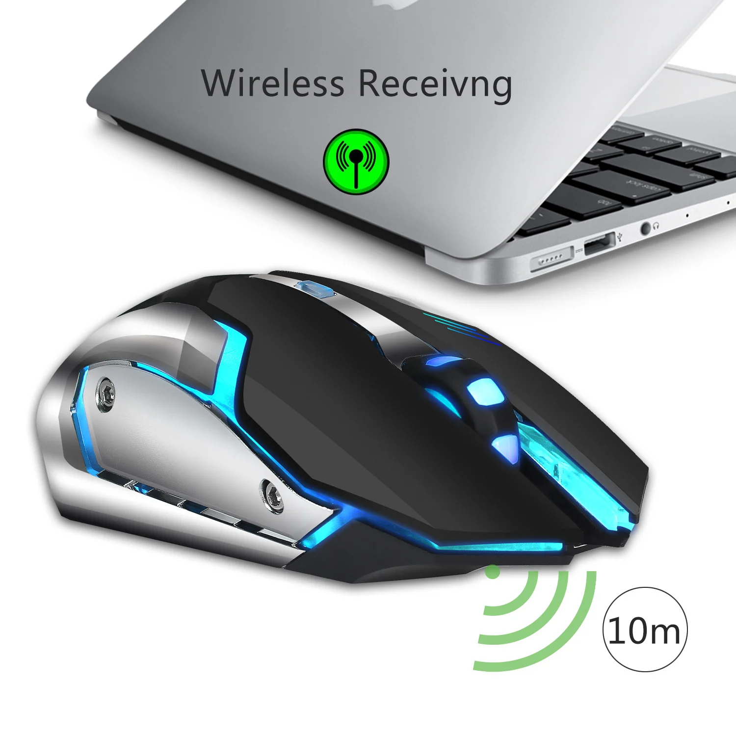 Comprar HXSJ-ratón inalámbrico M10 para juegos, periférico recargable con retroiluminación de 7 colores, 2400dpi, cómodo, para ordenador de escritorio y portátil