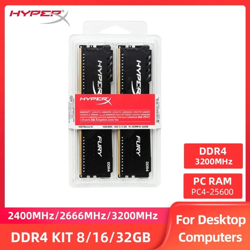 Comprar HyperX FURY KIT-Memoria de escritorio de doble canal, 8GB, 16GB, 32GB, 2400MHz, 2666MHz, 3200MHz, 3600MHZ, DIMM, DDR4, PC4-25600, 21300