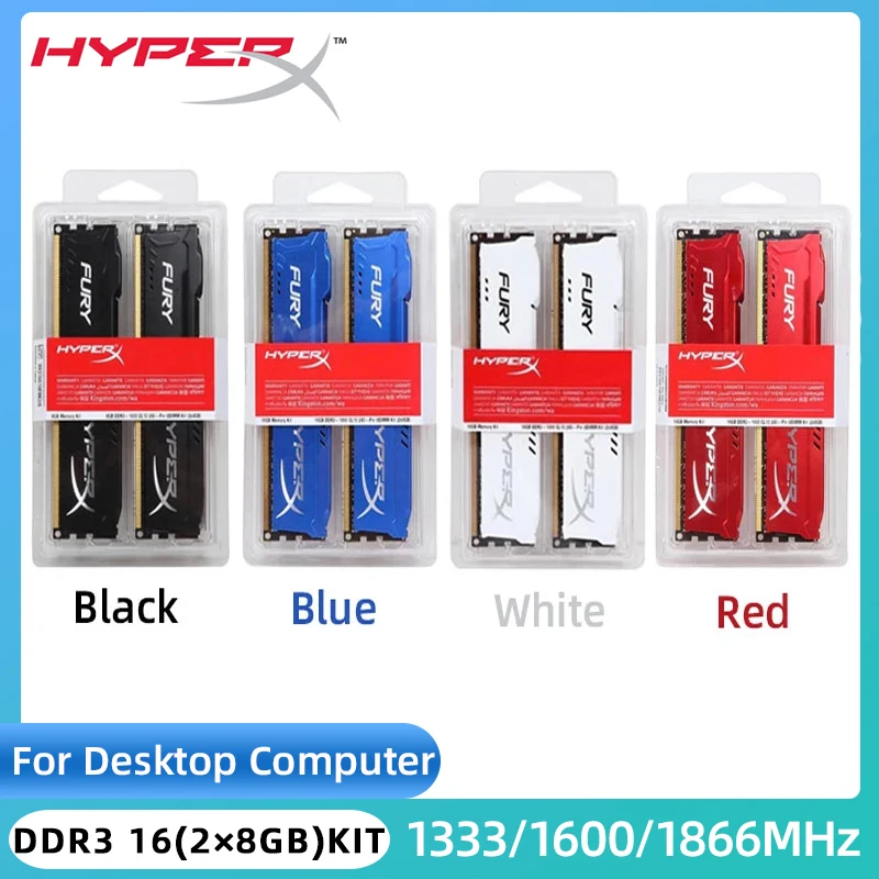 Comprar HyperX Fury-Kit de Memoria RAM DDR3, 16GB (2x8GB), 1866MHz, 1600MHz, 1333MHz, PC3-12800 RAM de escritorio, 14900 1,5 V, DIMM, 240 pines, DDR3