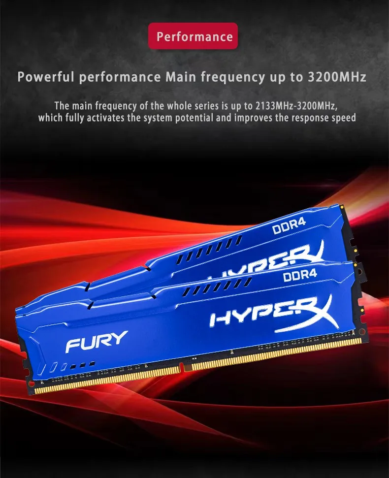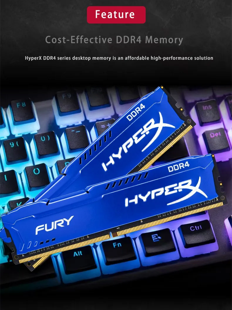 Comprar HyperX Fury-Memoria DDR4 para ordenador de escritorio, 4GB, 8GB, 16GB de RAM, 3200MHz, 2666MHz, 2400MHz, 2133MHz, 1,2 V, DIMM, PC-21300, 25600, para CPU intel