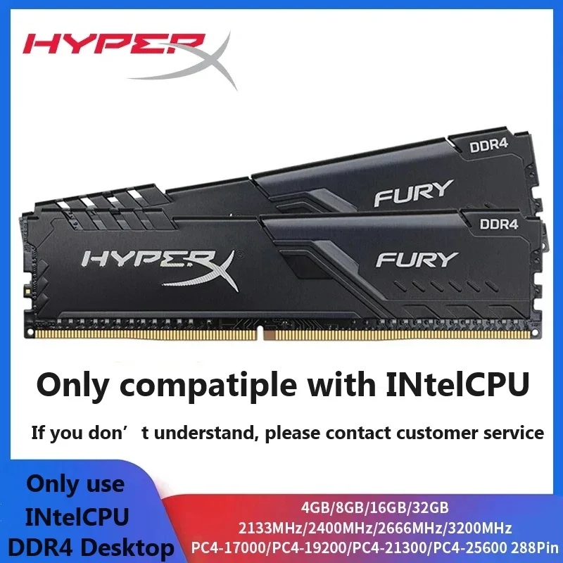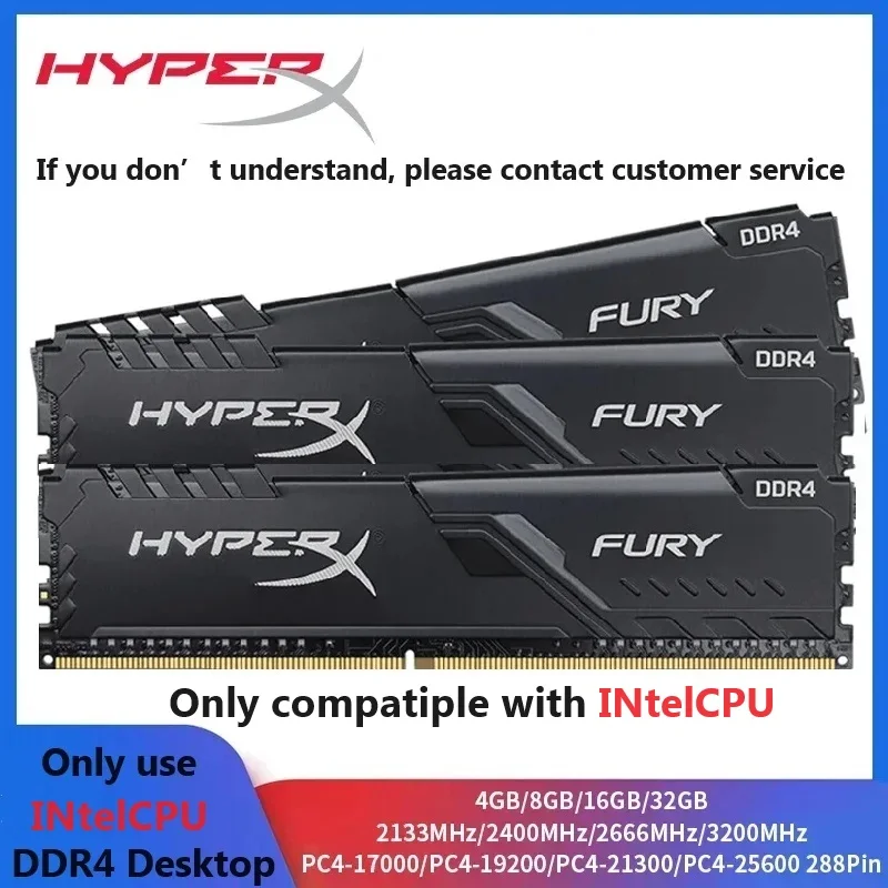 Comprar HyperX Fury-Memoria RAM DDR4 para ordenador de escritorio, 4GB, 8GB, 16GB, 2400, 2666MHz, 3200MHz, 288 Pines, INtel CPU