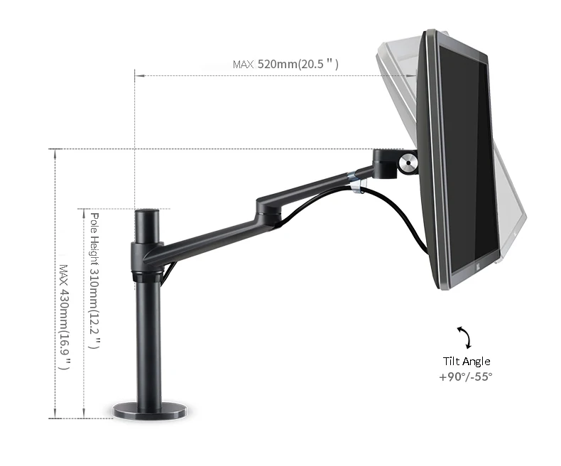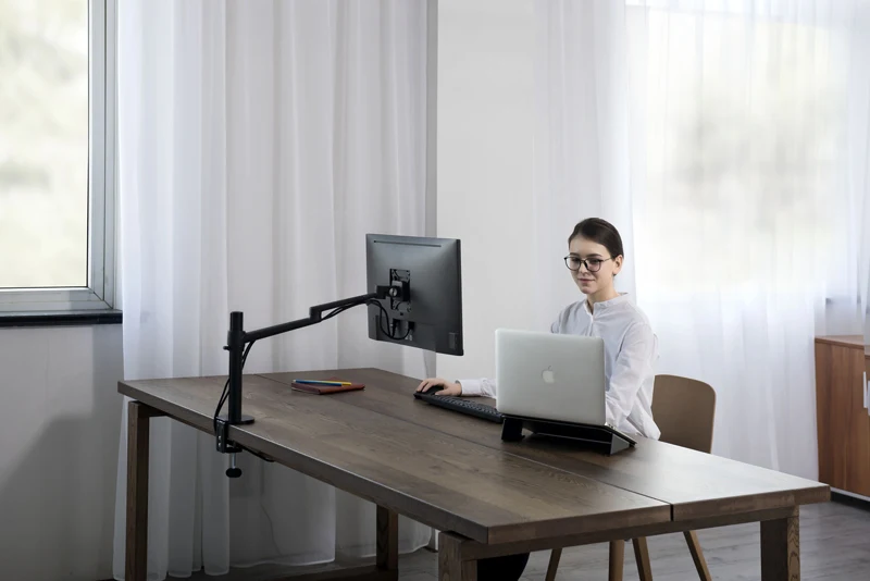 Comprar Hyvarwey-Soporte de Monitor de OL-1, Alunimum, altura ajustable, 17-32 pulgadas, brazo de movimiento completo, soporte de escritorio, carga de 8kg