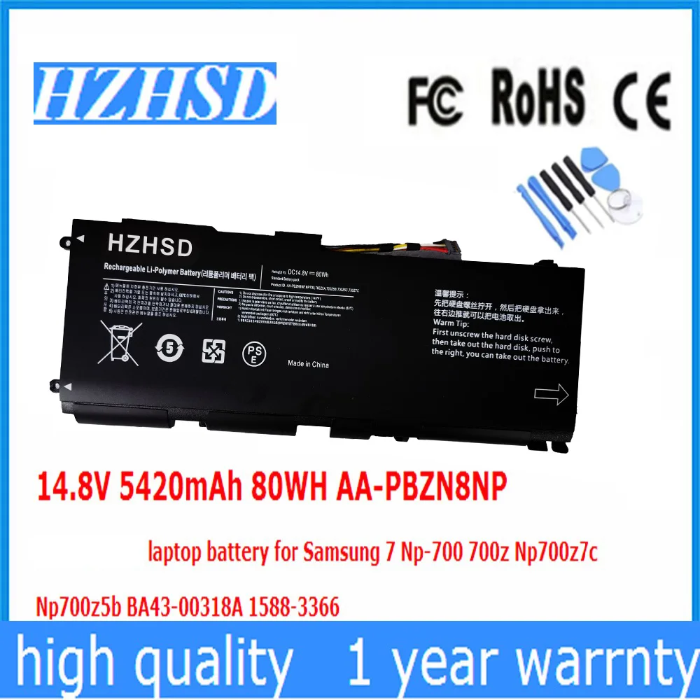 Comprar HZHSD-batería para ordenador portátil Samsung, 14,8 V, 80WH, AA-PBZN8NP, para 7 Np-700, 700z, Np700z7c, Np700z5b, BA43-00318A, 1588-3366