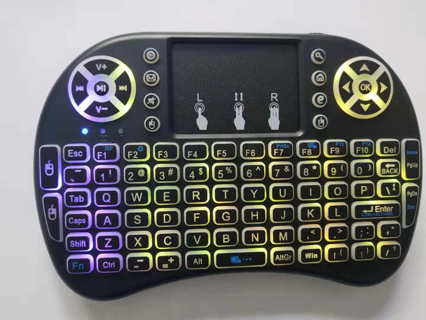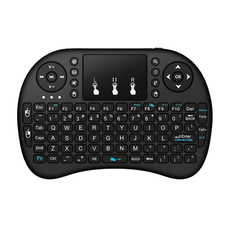 Mini teclado de carga táctil I8, 2,4G, Mini teclado inalámbrico de ardilla voladora, retroiluminación de tres colores, luz de marcha para caballo, varios idiomasDescripción del producto:- Conexión inalámbrica 2.4G, tamaño inteligente y portátil- Para disfrutar del entretenimiento multimedia para PC en casa- Conveniente y eficiente para conferencias, presentaciones y conferencias- Para compartir la pantalla del proyector.- ALMOHADILLA grande para escritura a mano, Qwerty total- Medidas (largo x ancho x alto): 146,8 x 97,5 x 19 mm- Alcance operativo: hasta 3 metros- Potencia de transmisión: +5 dB máx.- Corriente de funcionamiento: 50 mA¡El producto no funciona Smart TV~~~!- 1 teclado i8 (batería AAA no incluida)- 1 receptor USB