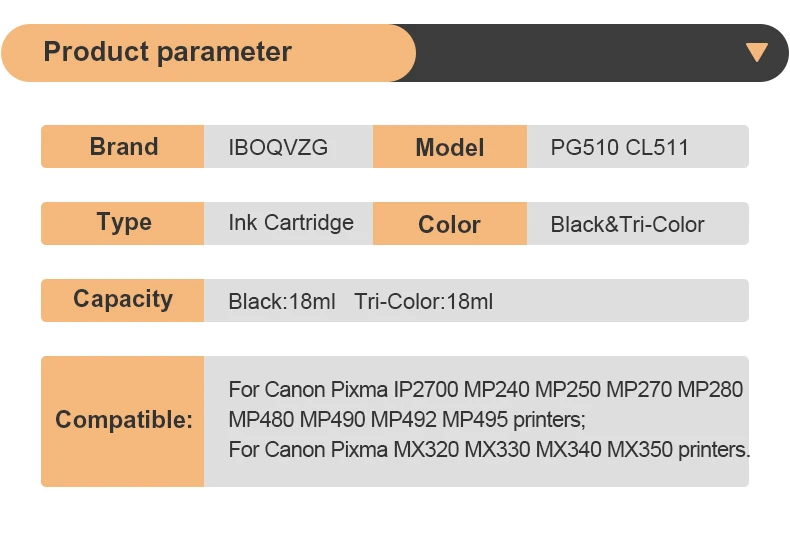 Modelo del producto: cartucho de tinta PG510 CL511