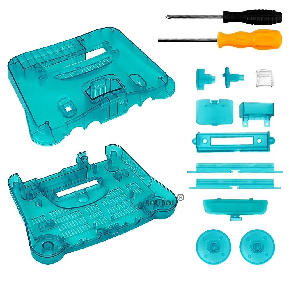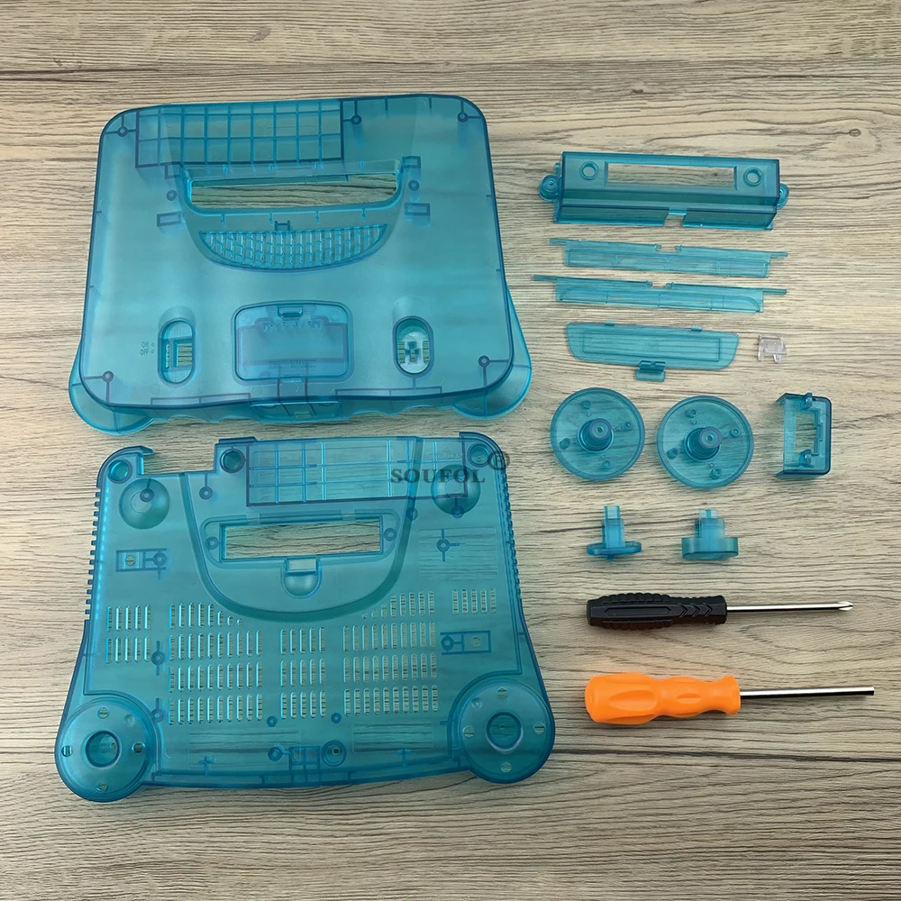Comprar Ice Blue Limited vervangende plastic omhulsel doorschijnende behuizing voor N64 64, vervangende behuizing, transparante dozen, gamingaccessoires