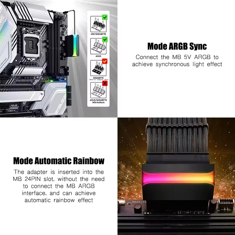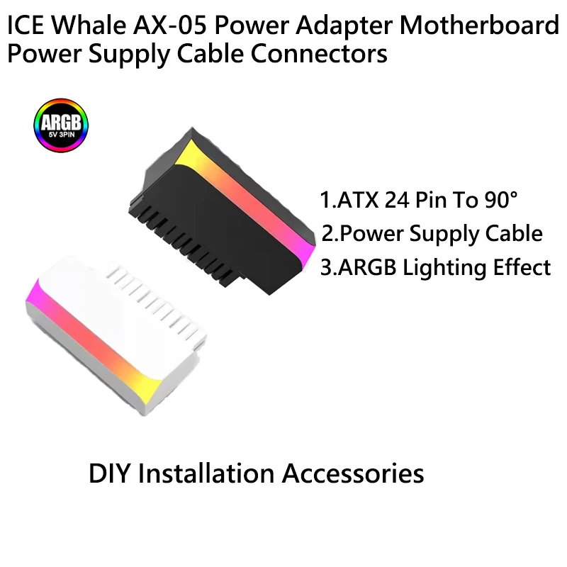 Comprar ICE Whale AX-05 ATX 24Pin a 90 ° Adaptador de corriente ARGB, placa base, conectores de Cable de alimentación, accesorio de montaje Modular DIY