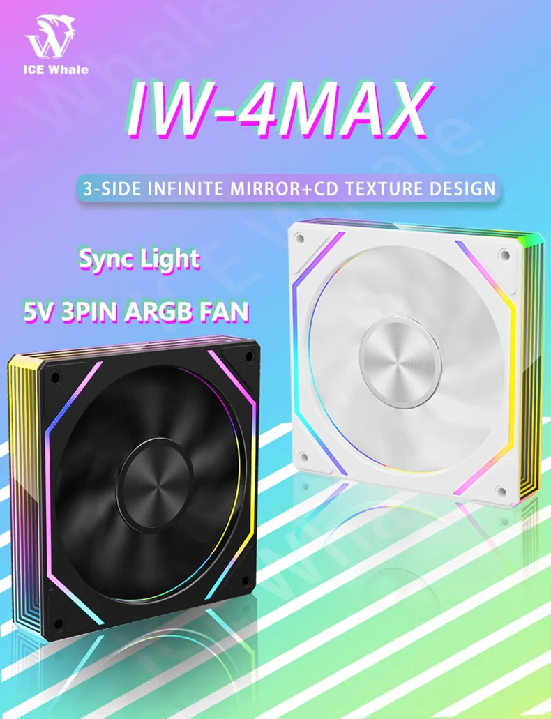 ICE Whale IW-4MAX Prism 7PRO ventilador de refrigeración para caja de ordenador pantalla completa de 3 caras espejo infinito 12CM ARGB ventilador con cubierta