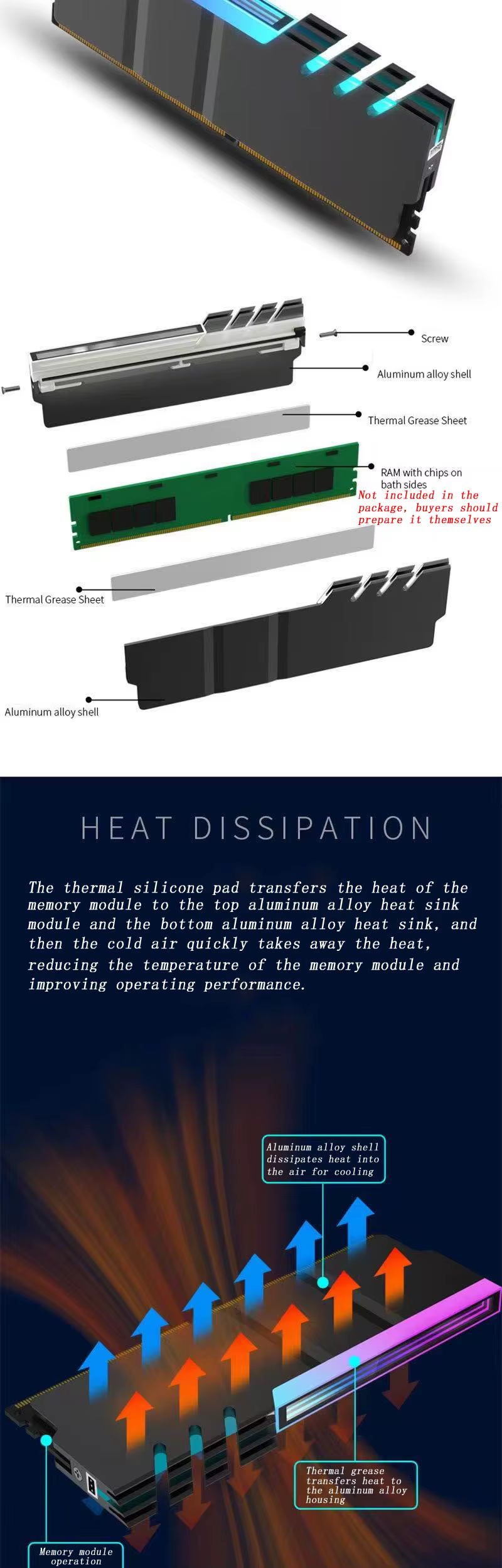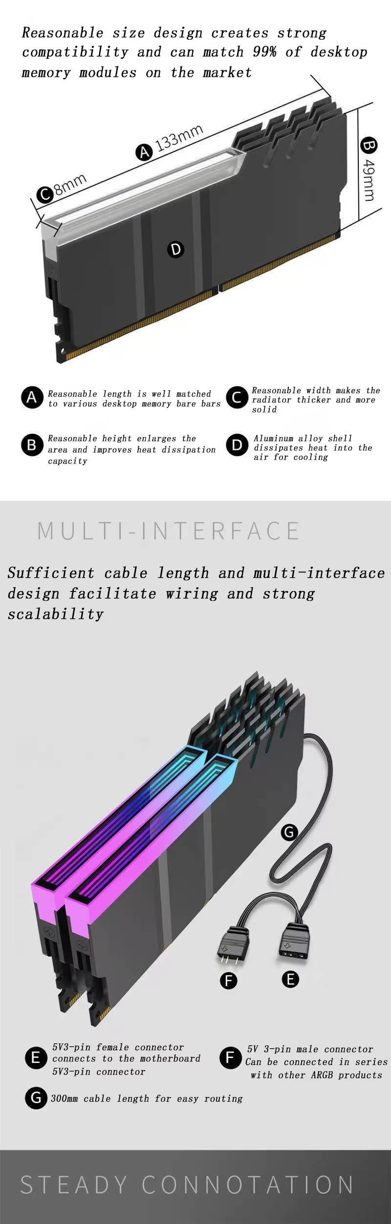 ICE Whale NC-1 RAM Armor 5V ARGB sincronización de la placa base espejo infinito chaleco de enfriamiento de memoria de escritorio de aluminio con almohadilla térmica