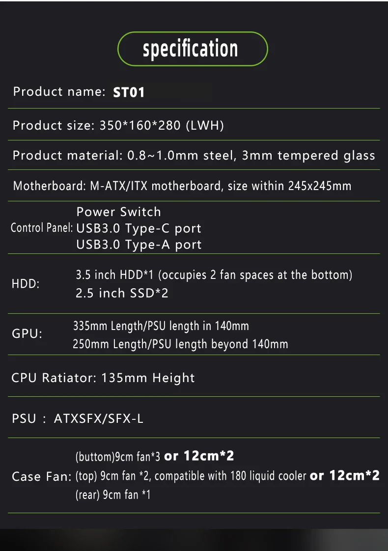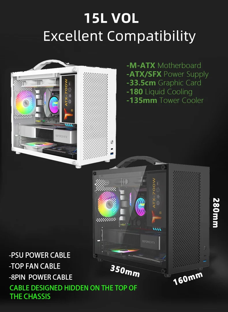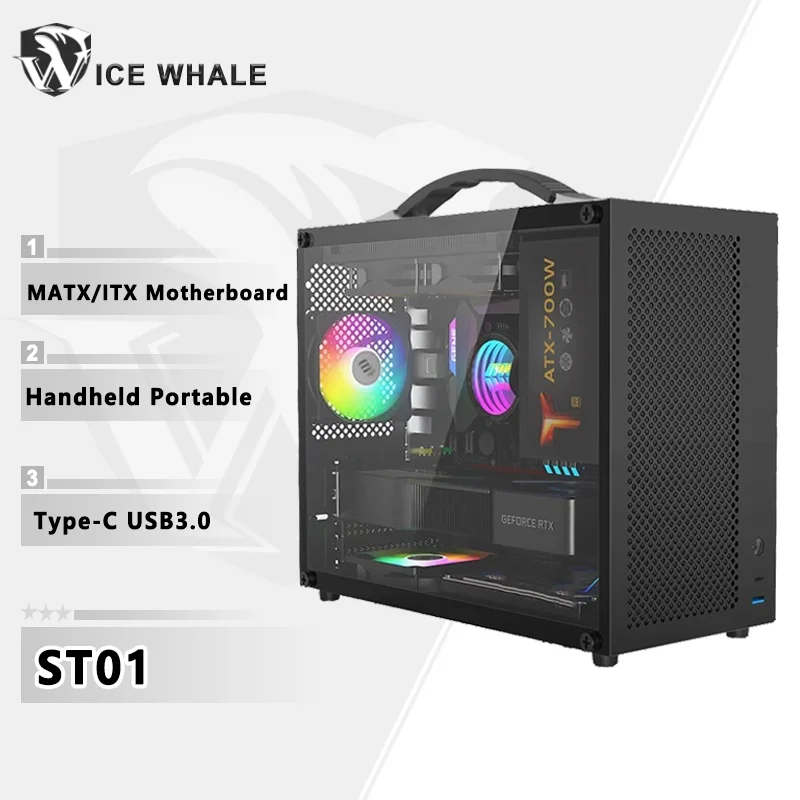 Comprar ICE Whale ST01 Estuche portátil de mano Mini-ITX MATX placa base tipo C USB3.0 Mini chasis de juego de escritorio fuente de alimentación SFX/ATX