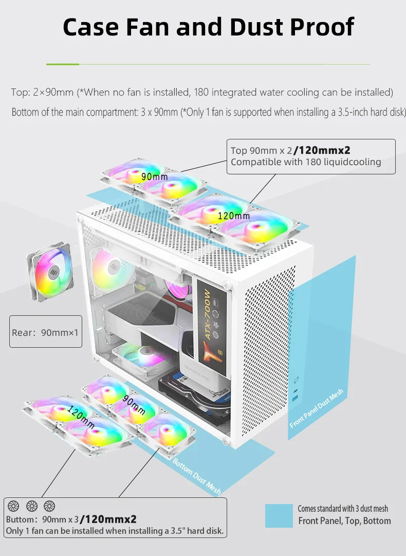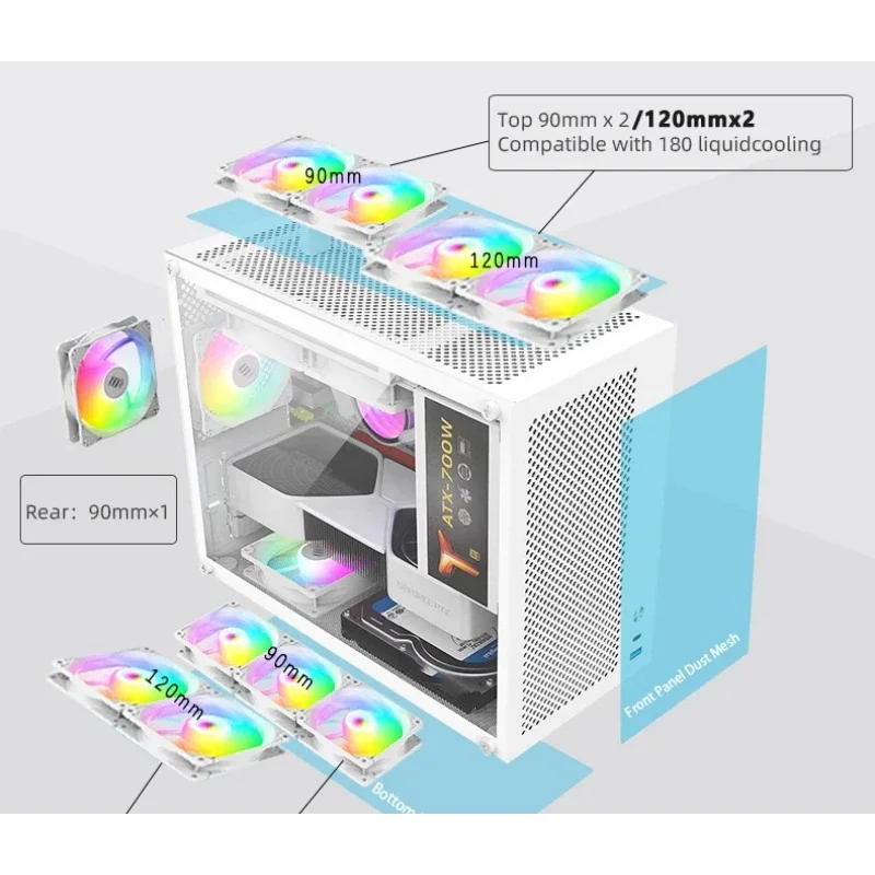 (arriba) Ventilador de 9 cm * 2, ventilador de 12 cm * 2, compatible con enfriador de líquido 180 (opcional)