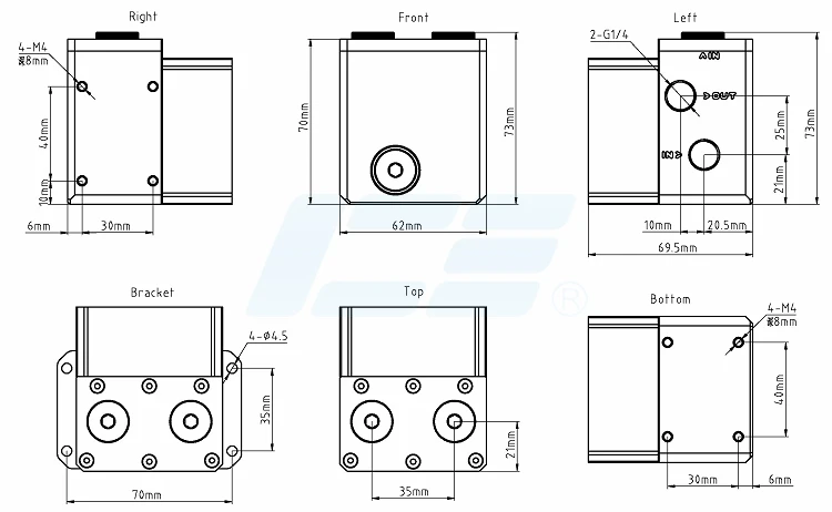 Comprar IceManCooler 2U depósito de servidor ampliar bomba DDC pequeño tanque de agua bucles de refrigeración construcción, POM, G1/4 ",ICE-2UDCR