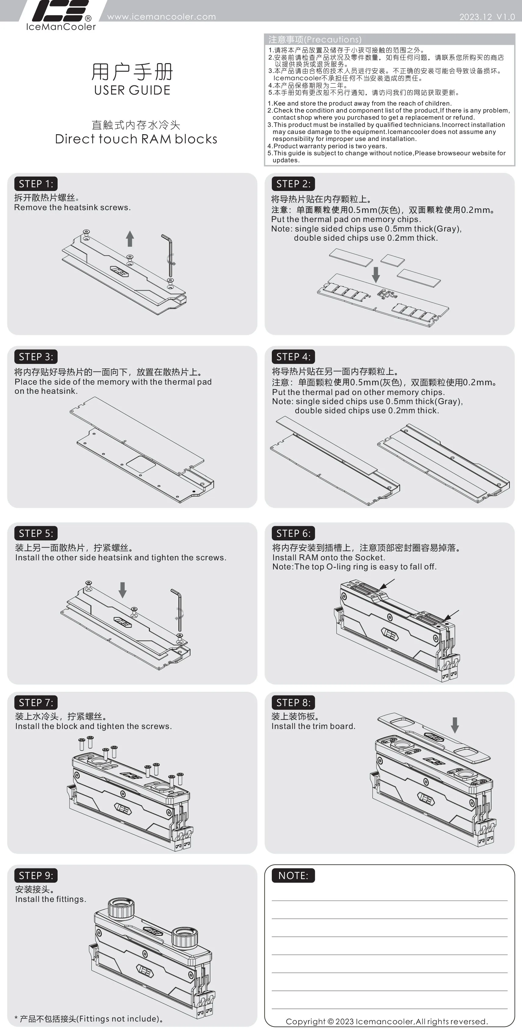 Comprar IceManCooler Chip de memoria táctil directa, bloque de agua RAM para enfriador de cobre Overclock de 4 RAM, níquel completo, G1/4"