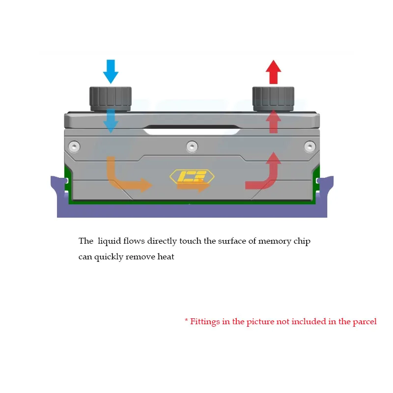 El líquido de refrigeración por agua fluye directamente a través de la superficie del chip de memoria