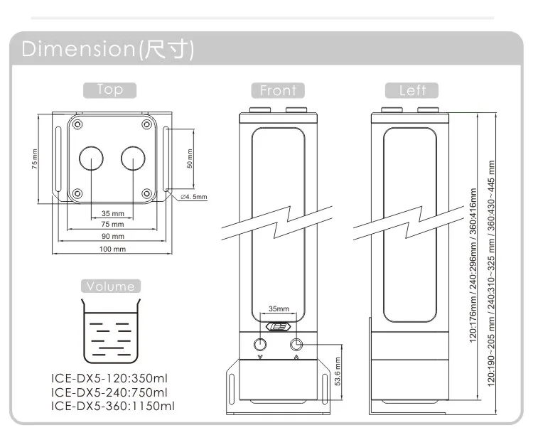 Comprar IceManCooler-depósito DX5 120 para tanque de agua de refrigeración líquida, Combo de bomba D5, 5V, Control de placa base de 3 pines, negro, blanco