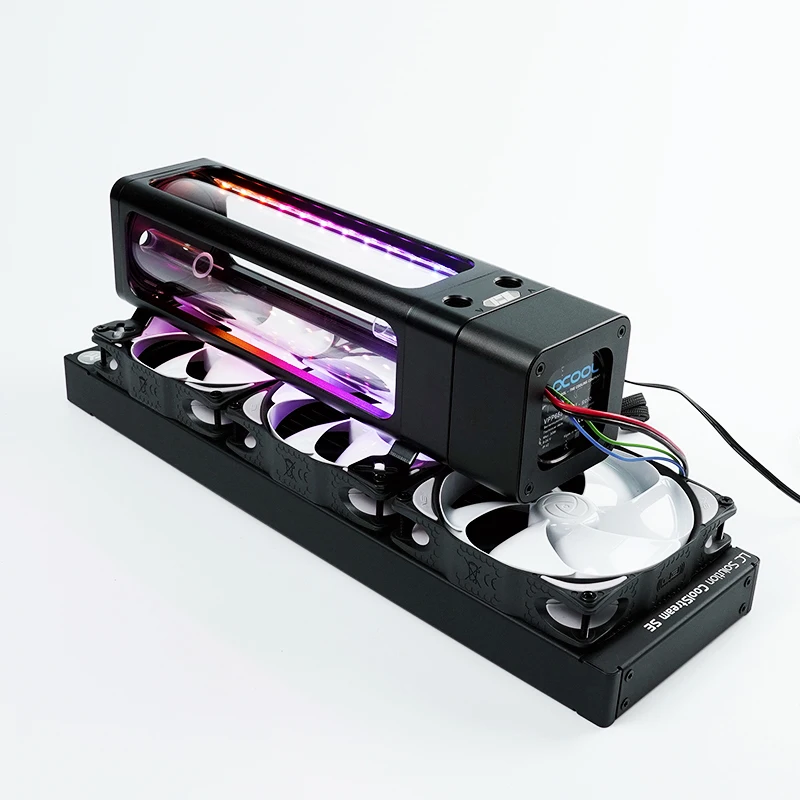 El ventilador de la imagen no está incluido en el enlace. Este enlace solo incluye depósito, bomba D5 según su opción, puede elegir con bomba también sin bomba.