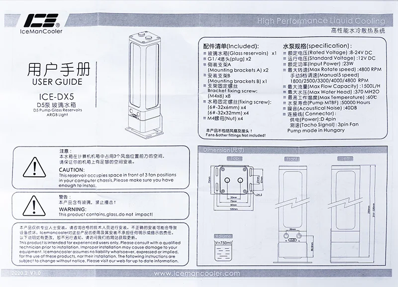 Comprar IceManCooler-tanque de refrigeración por agua DX5 360 ARGB, soporte de bomba D5, depósito con soporte, placa base AURA de + 5V, 3 pines, Blanco, Negro