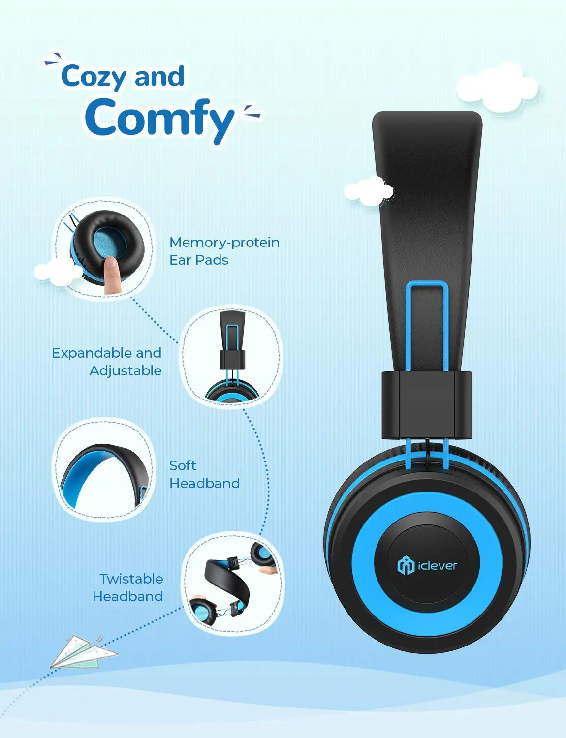 Almohadillas suaves para los oídosEn iClever, la comodidad es tan importante como la calidad. Estos auriculares para niños con almohadillas para los oídos de proteína de memoria mantendrán cómodos los oídos pequeños durante horas y horas.
