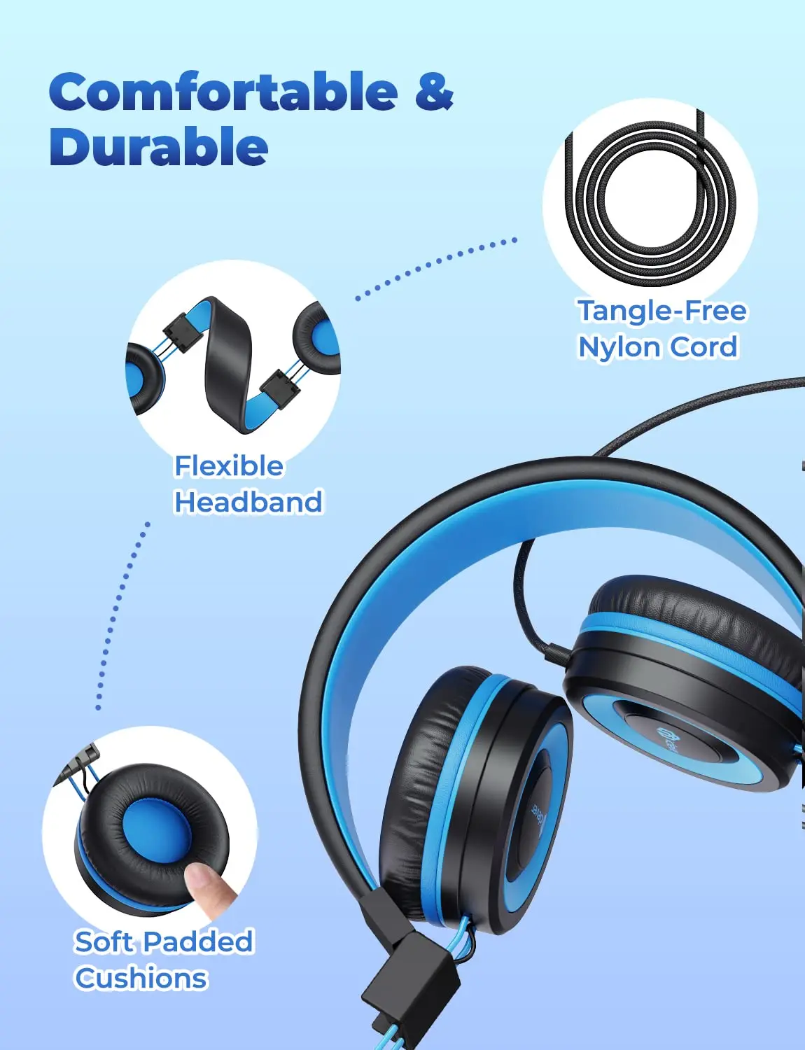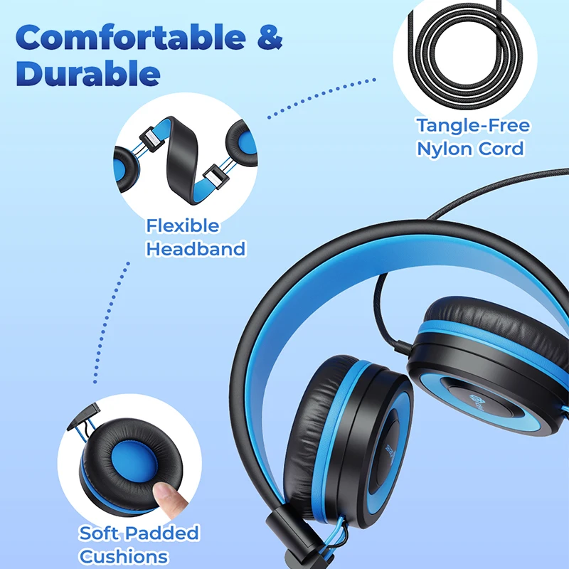 Almohadillas suaves para los oídosEn iClever, la comodidad es tan importante como la calidad. Estos auriculares para niños con almohadillas para los oídos de proteína de memoria mantendrán cómodos los oídos pequeños durante horas y horas.