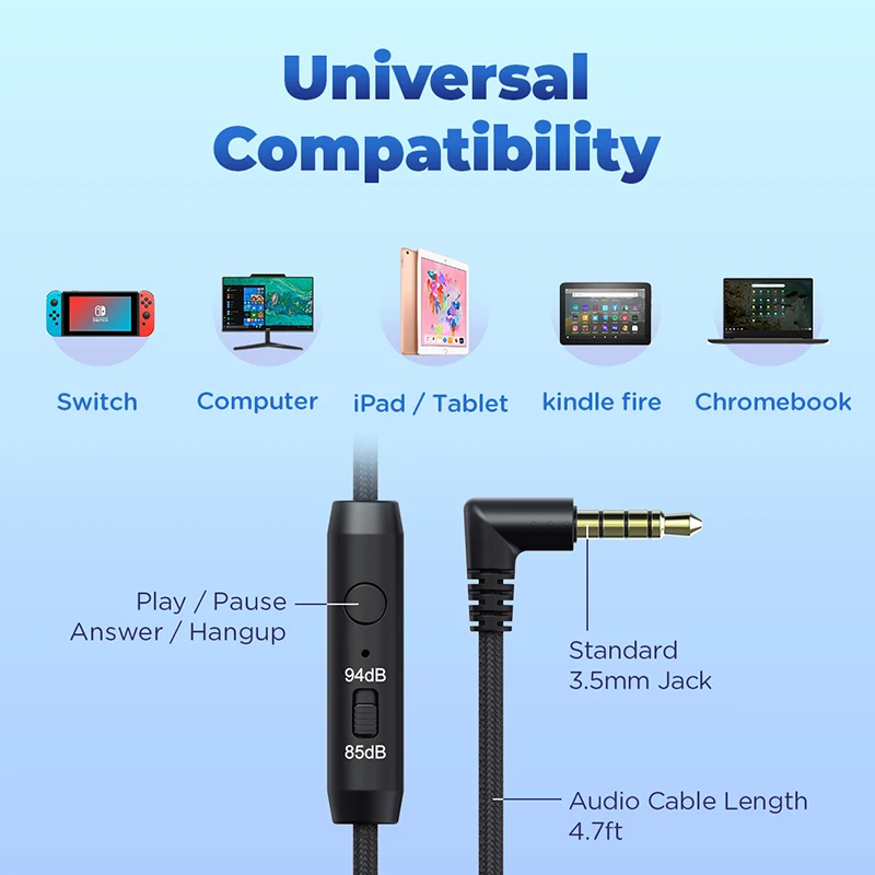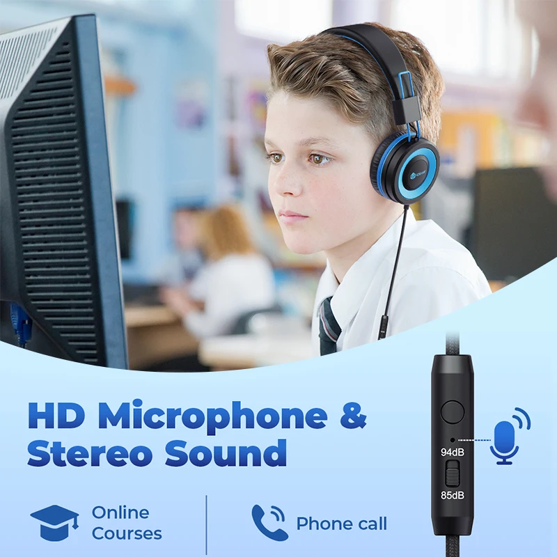 Los auriculares con cable iClever funcionan con el micrófono HD incorporado para llamadas telefónicas con manos libres. Estos auriculares para niños son compatibles con una amplia gama de dispositivos con conector de audio de 3,5mm como Chromebook, Kindle Fire, Switch, iPad, Smartphone, MP3/4, tableta de estudio, portátil, PC, etc.