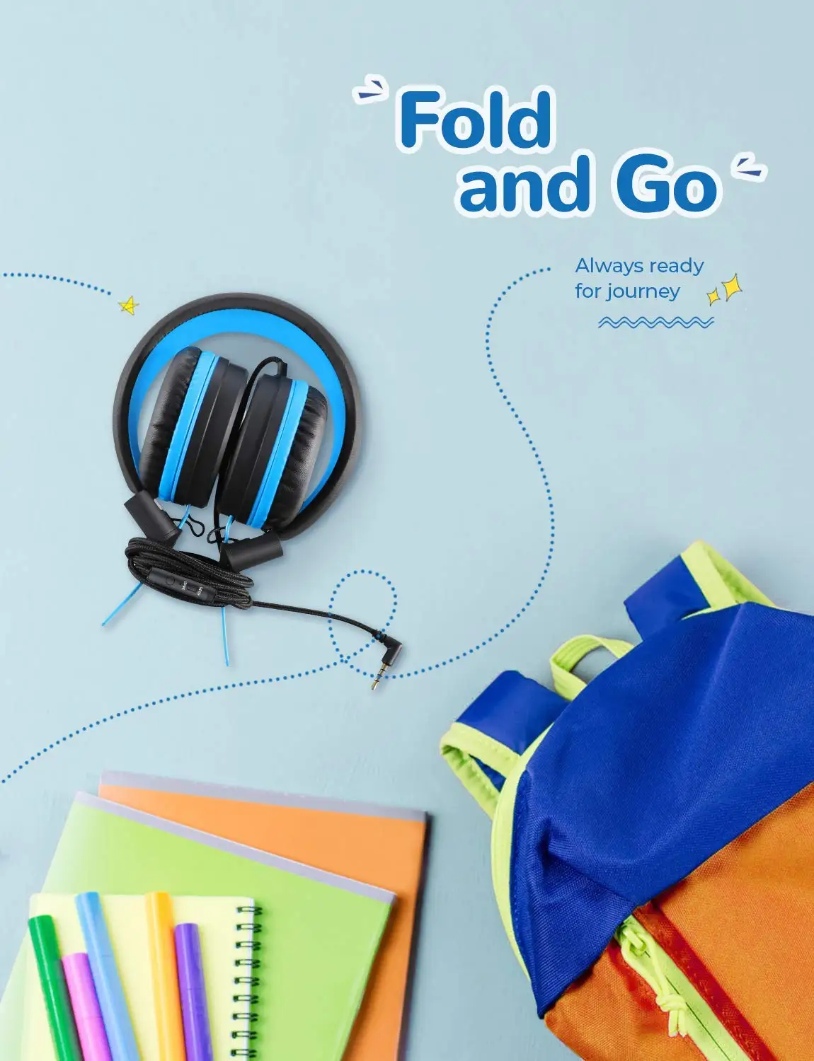 Ahorro de espacio con diseño plegableTal vez haya tenido problemas con auriculares grandes y enormes que a su hijo le encantan pero que no puede llevar debido a su tamaño. La capacidad de plegado hace que los auriculares iClever para niños sean más portátiles. Y hace que el almacenamiento sea mucho más fácil.