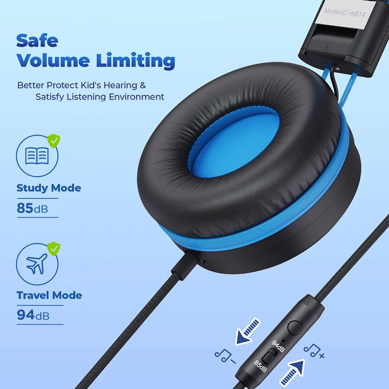 Comprar iClever - auriculares con cable HS14 para niños, audífonos con sonido estéreo y micrófono, plegables, con volumen limitado de 94dB, para jugadores, regalo