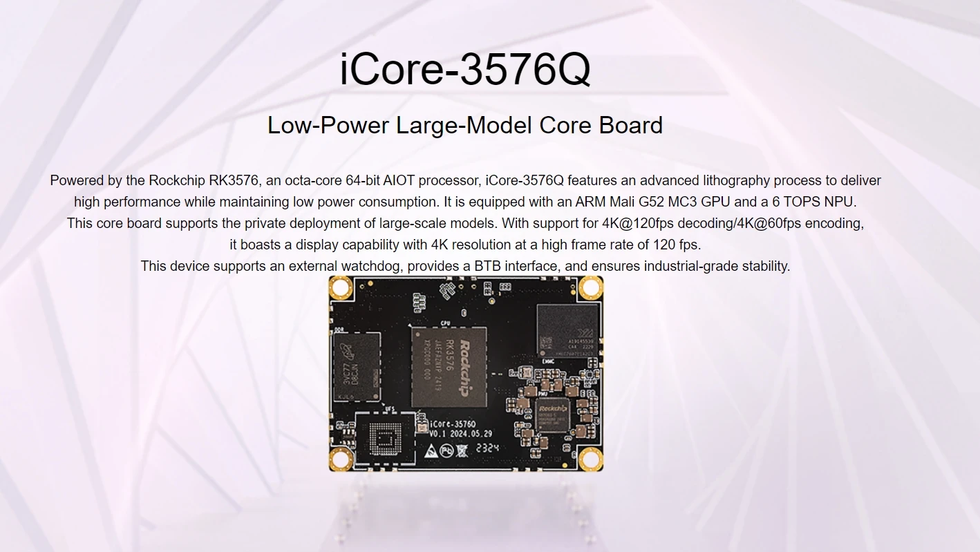 Comprar ICore-3576Q 6T Computational AIOT Placa central industrial 4K120 computación de bordes Ruixin Micro RK3576
