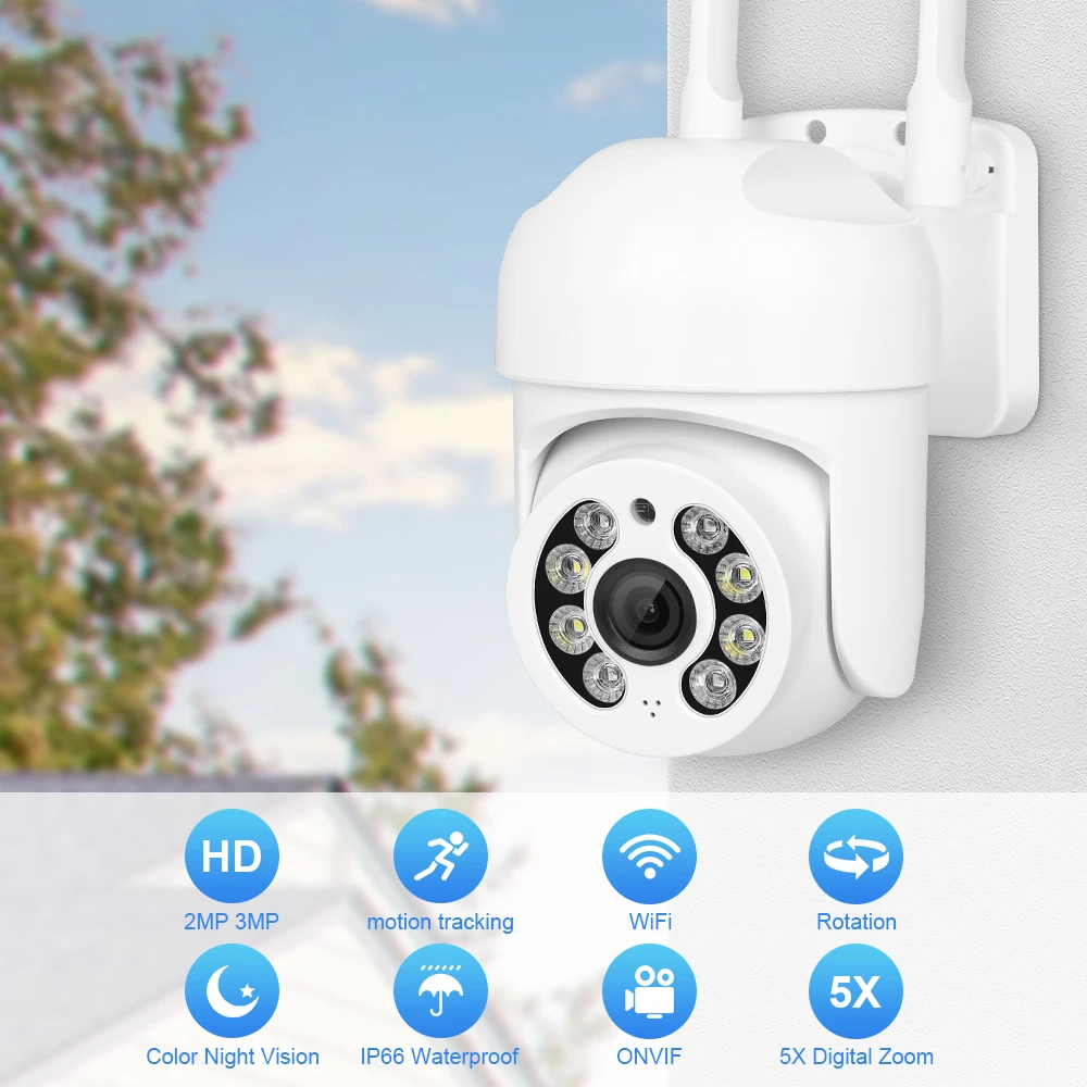 ICSEE App 4MP HD cámara Wifi para exteriores cámara IP PTZ 5X Zoom Digital 1080P WIFI cámara de vigilancia CCTV Ai seguimiento automático