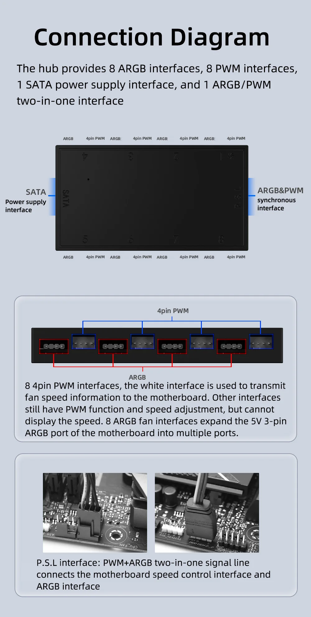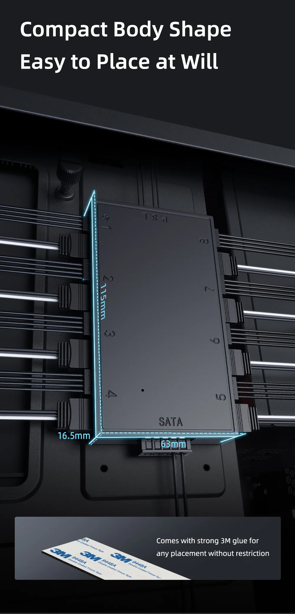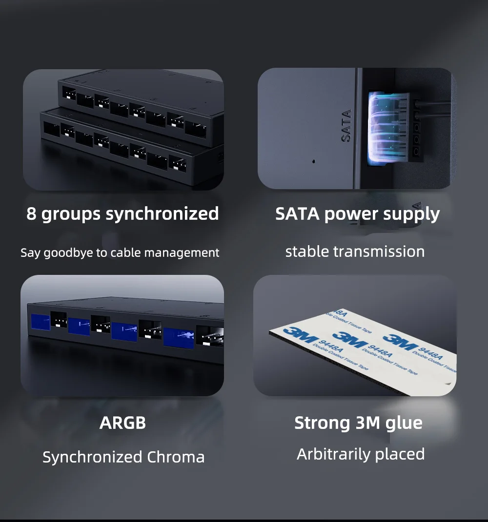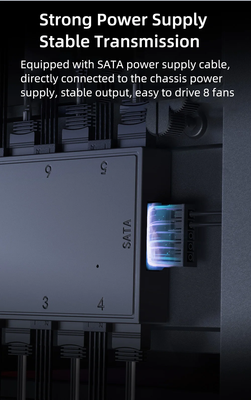 ID-COOLING 1 a 8 PWM y ARGB Hub Splitter 4 pines PWM 3 pines adaptador ARGB direccionable concentrador de interfaz SATA para ventilador con cubierta