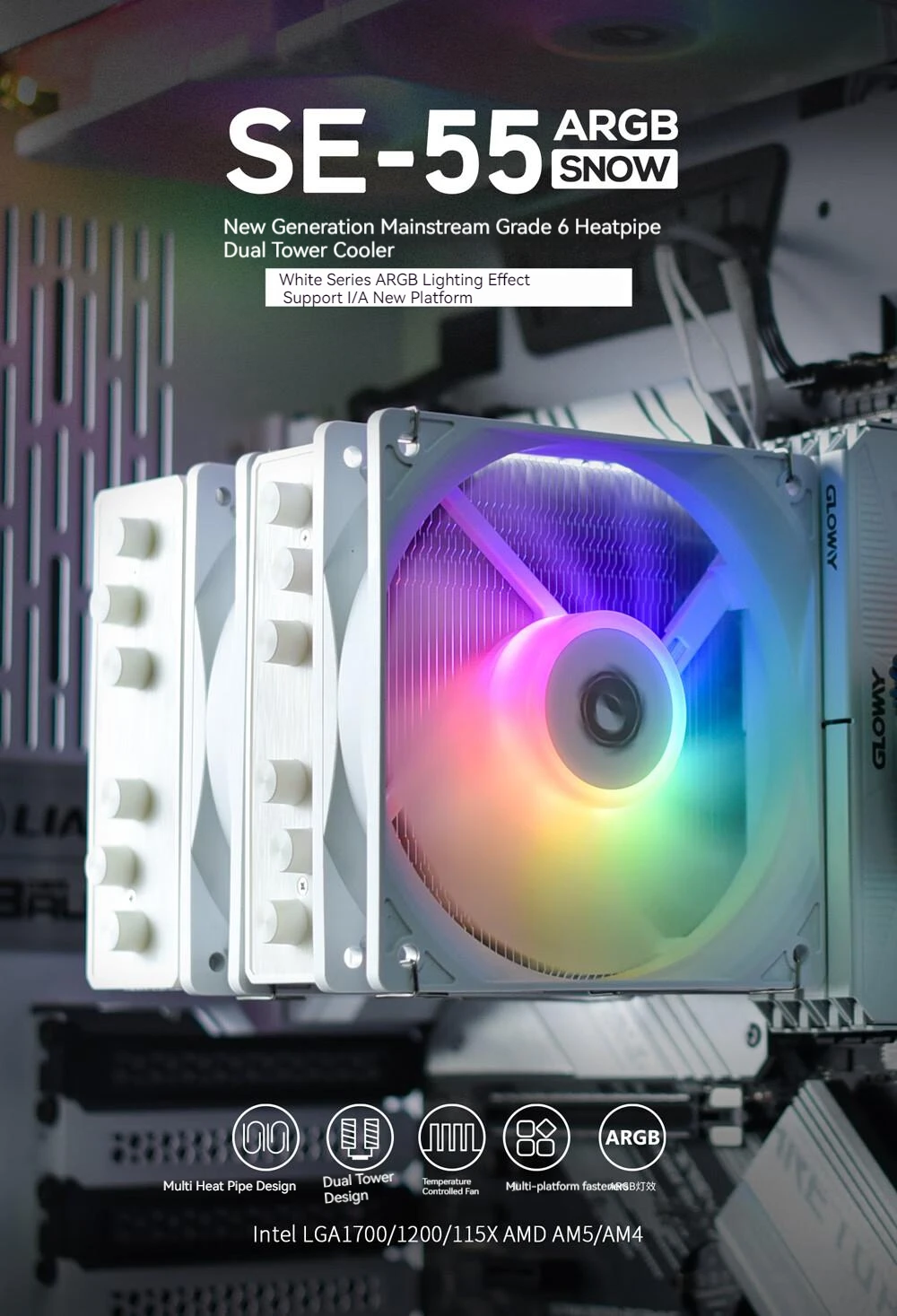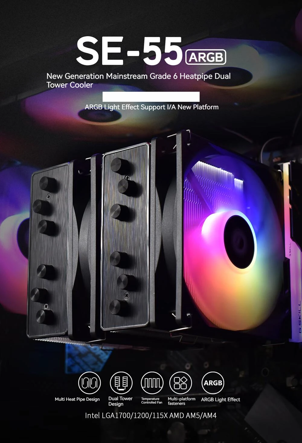 Comprar ID-SE-55 de refrigeración ARGB, ventilador doble de torre, 6 tubos de calor, AM4, AM5, LAG1700/1200/115X, procesador de CPU, Enfriador de aire, radiador