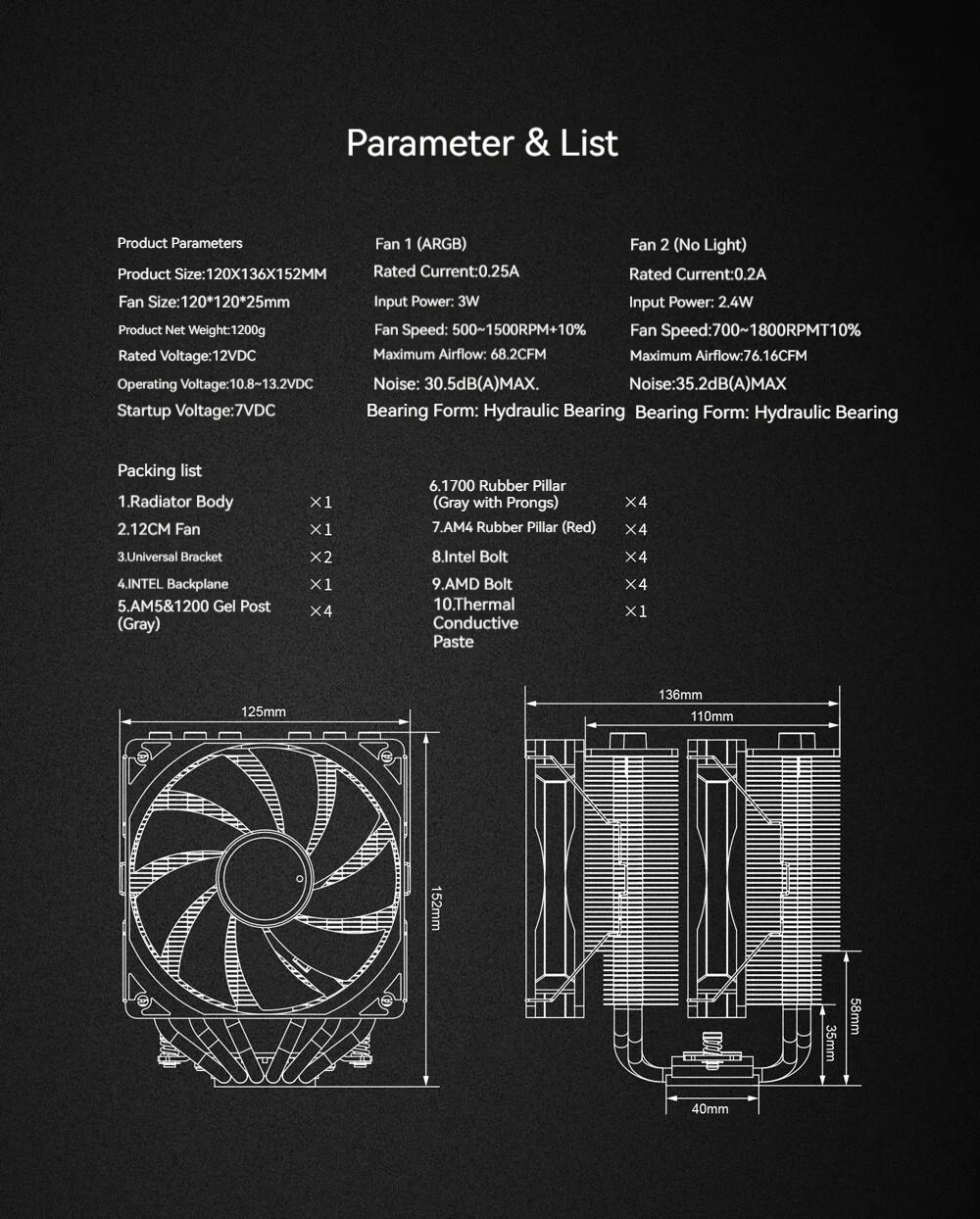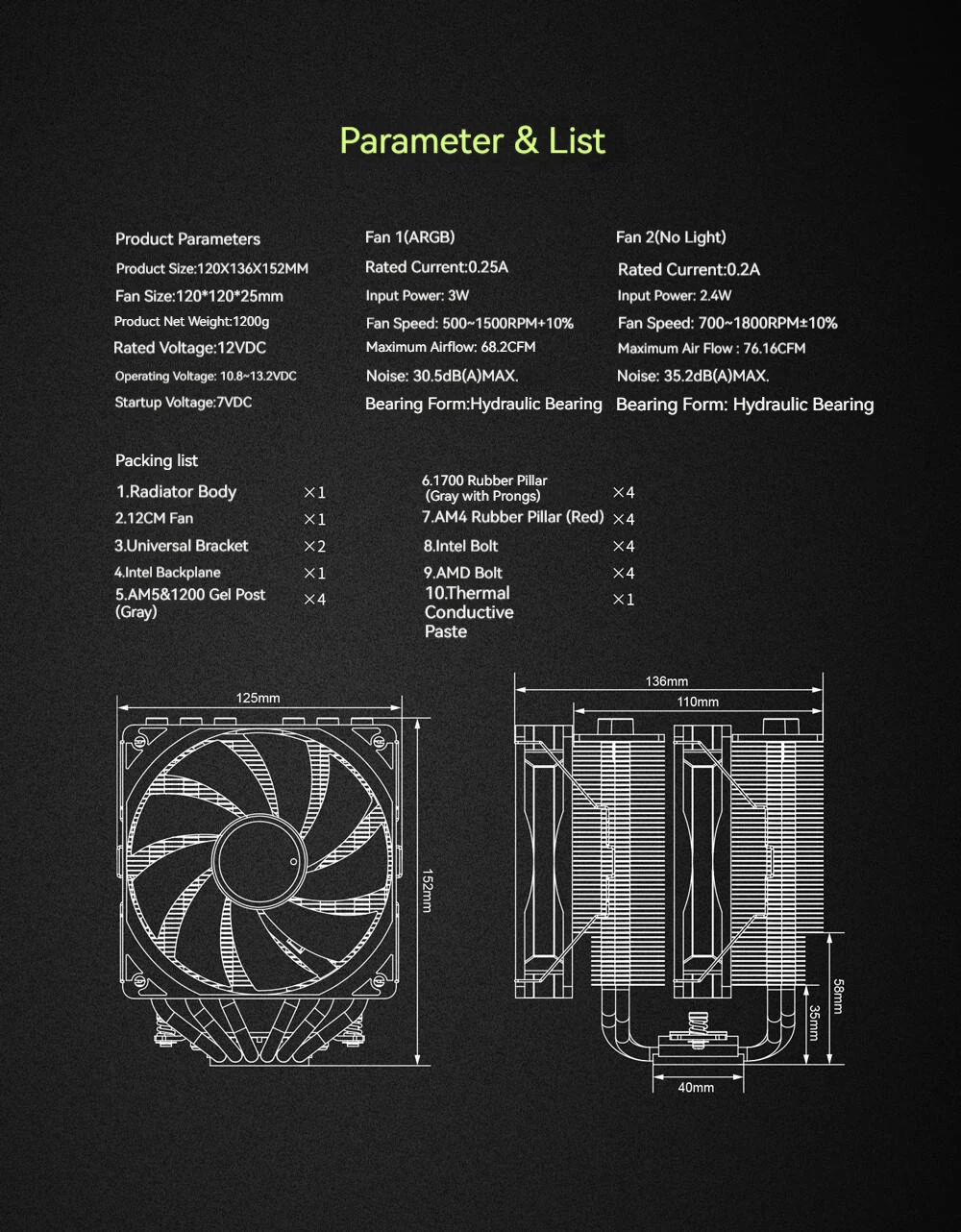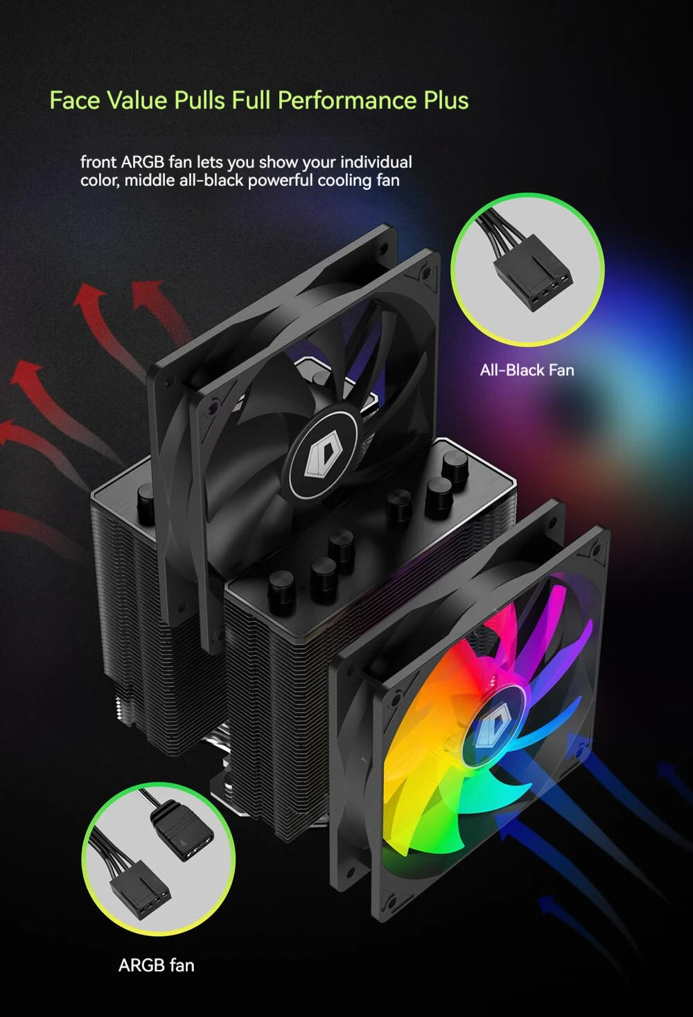 ID-COOLING 1200 ARGB Ventiladores dobles de doble Torre 6 Tubos de calor AM4 AM5 LAG1700/115X Procesador de CPU Enfriador de aire Radiador