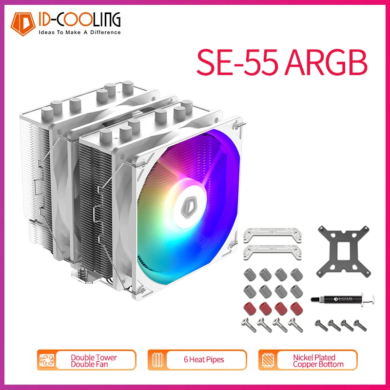 Comprar ID-SE-55 de refrigeración ARGB, ventilador doble de torre, 6 tubos de calor, AM4, AM5, LAG1700/1200/115X, procesador de CPU, Enfriador de aire, radiador