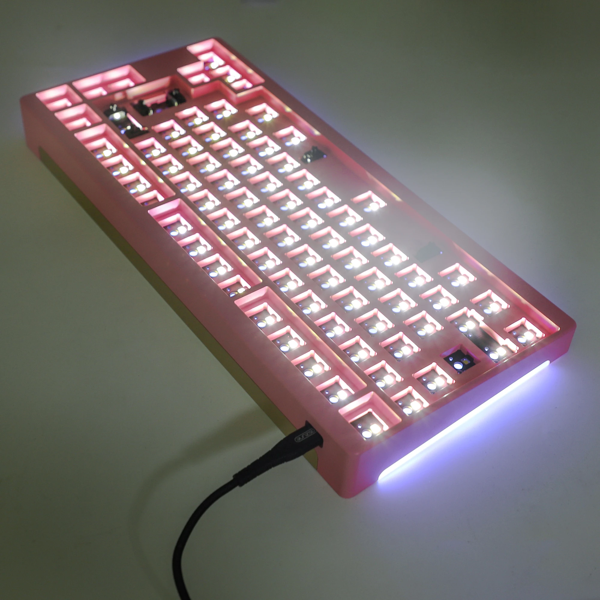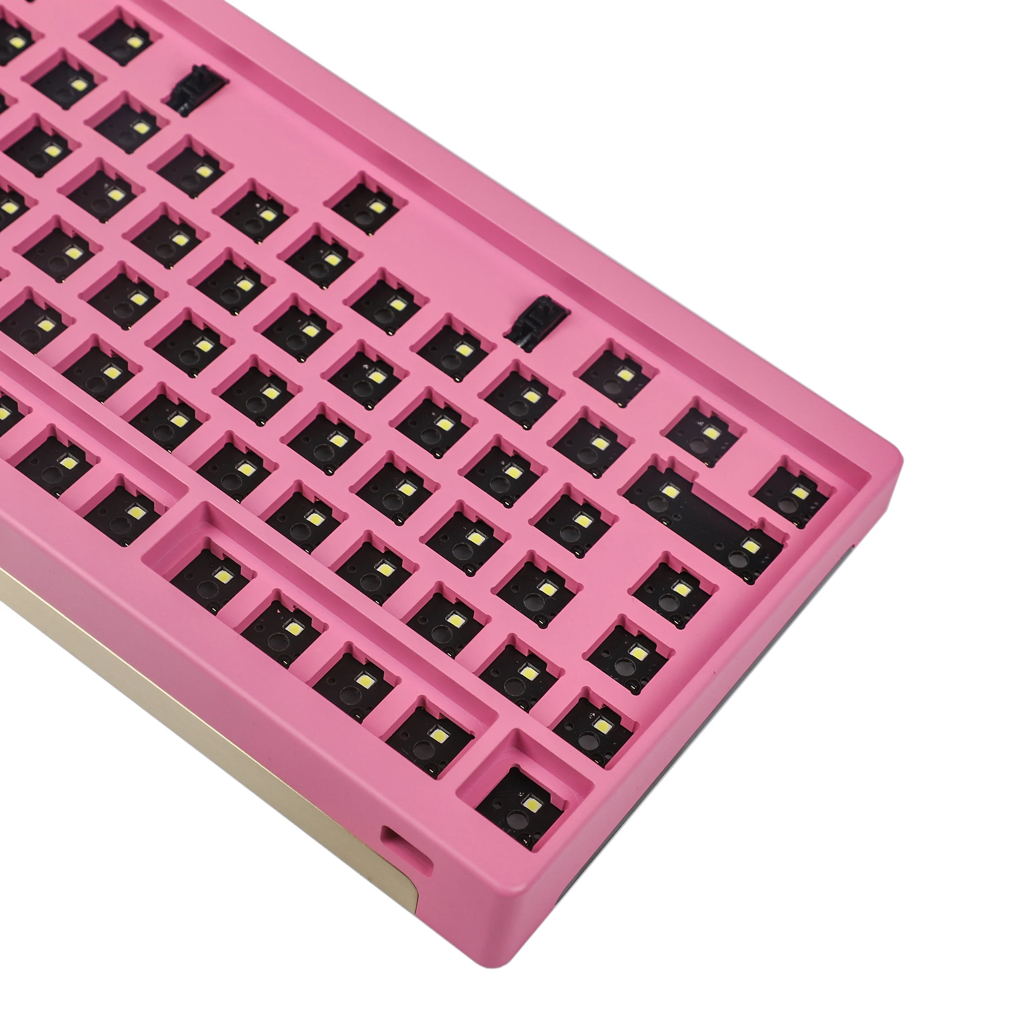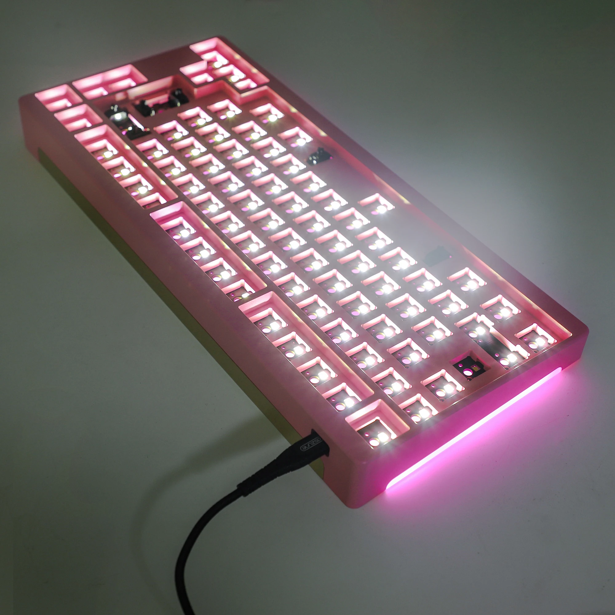 La carcasa negra está anodizada y pulida con chorro de arena. La carcasa blanca y rosa está recubierta con recubrimiento en polvo. La PCB está pre-soldada con LED de interruptor RGB y SMD blancos.