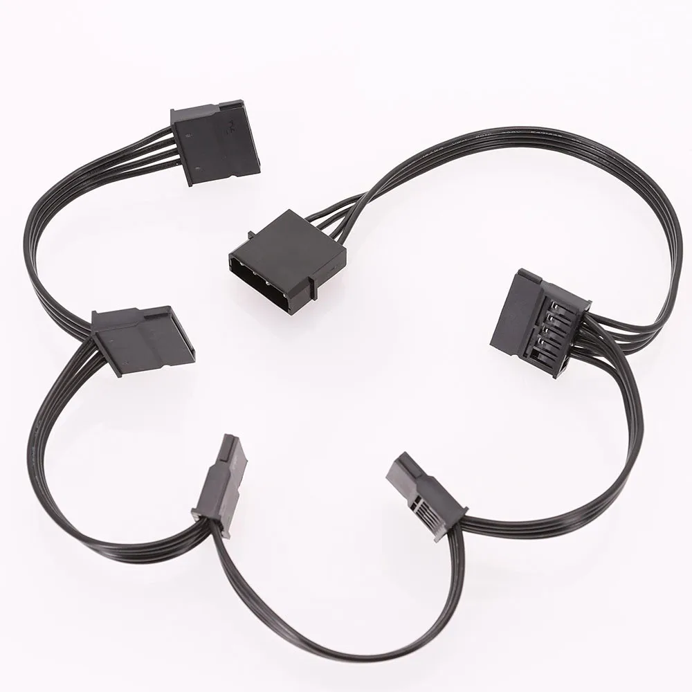 Conector macho Molex de 4 pines a 5 conectores hembra SATA de 15 Pines, SATA para discos duros, etc.