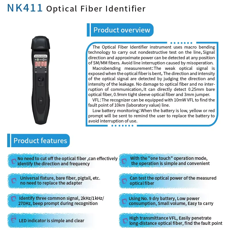 Comprar Identificador de fibra óptica de alta calidad, NK-411 con localizador Visual de fallas integrado de 2mw, novedad de 2023