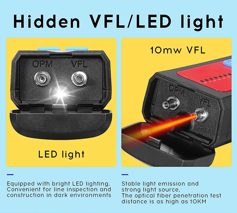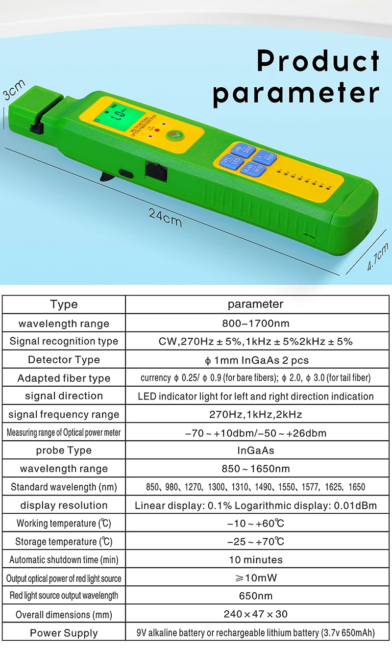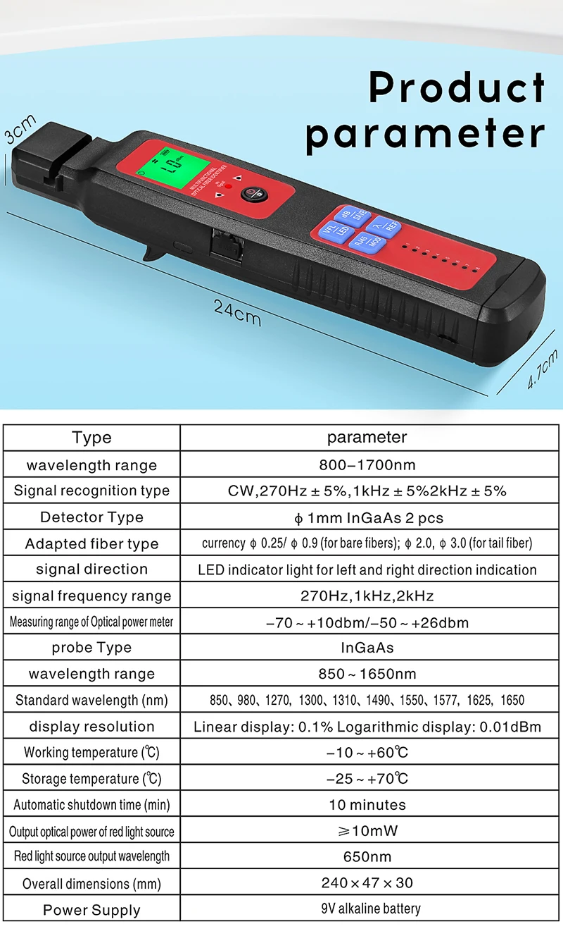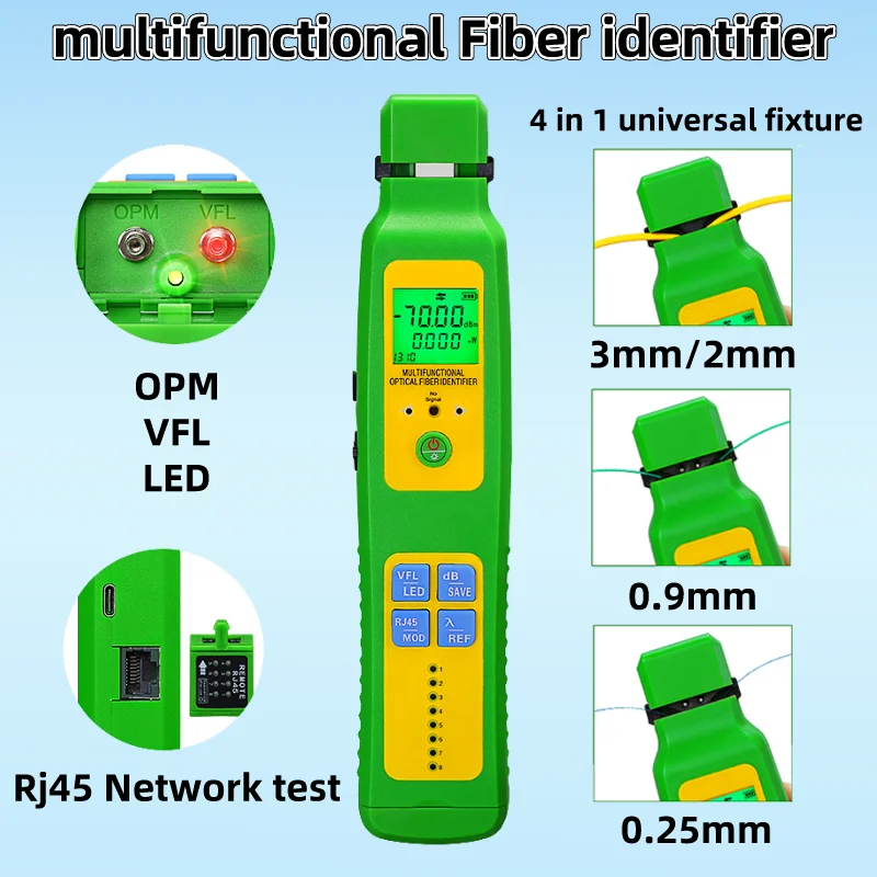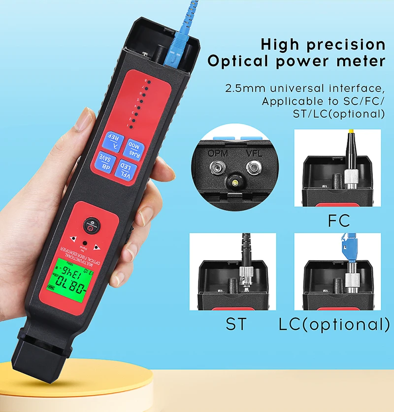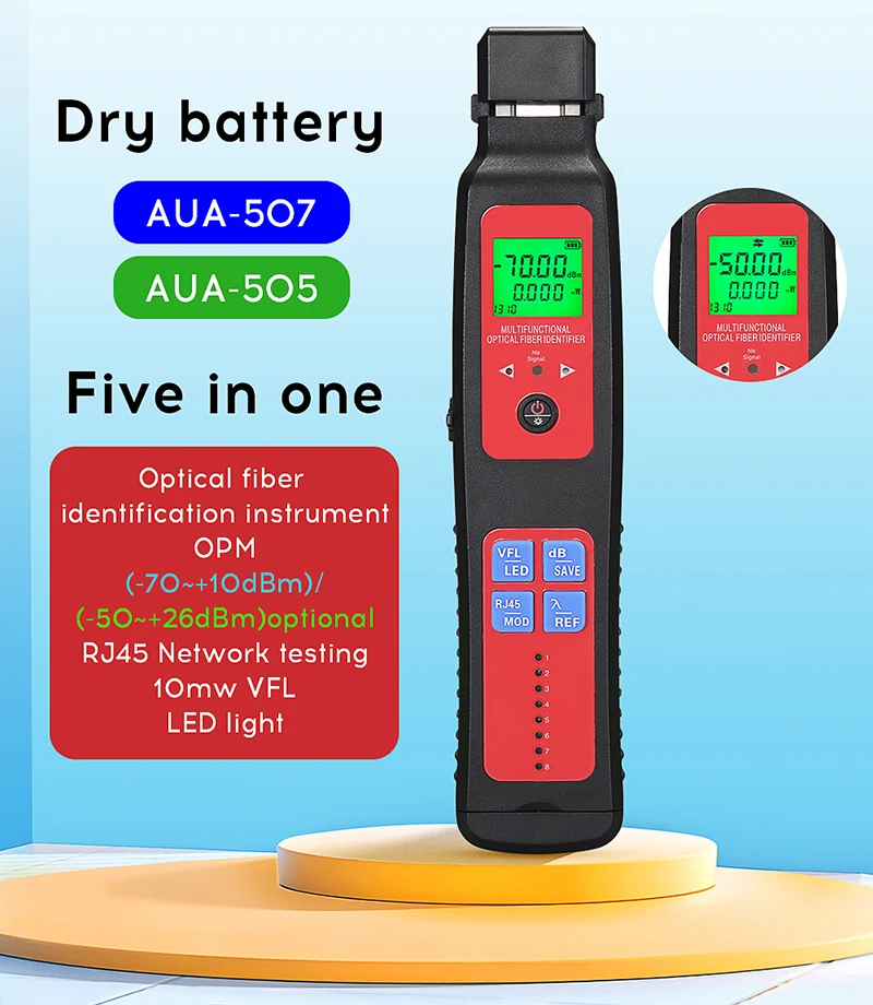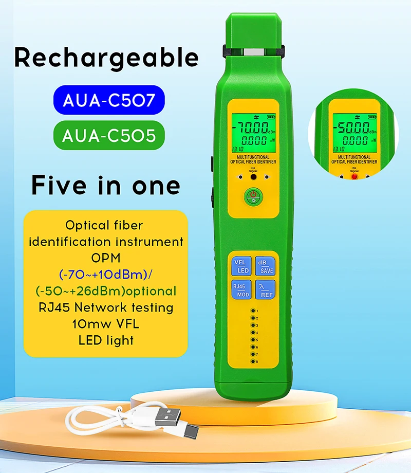 Comprar Identificador de fibra óptica multifuncional, probador de Cable de fibra, OPM integrado, 10mW, VFL, LED, RJ45, AUA-C507/C505/507/505