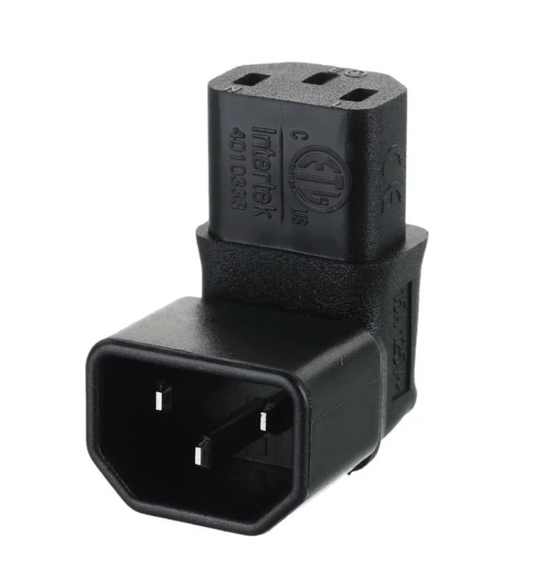 Comprar IEC 320 C14 a C13 adaptador de CA de ángulo recto, IEC 3 polos hembra macho a 90 grados arriba abajo ángulo convertidor de CA