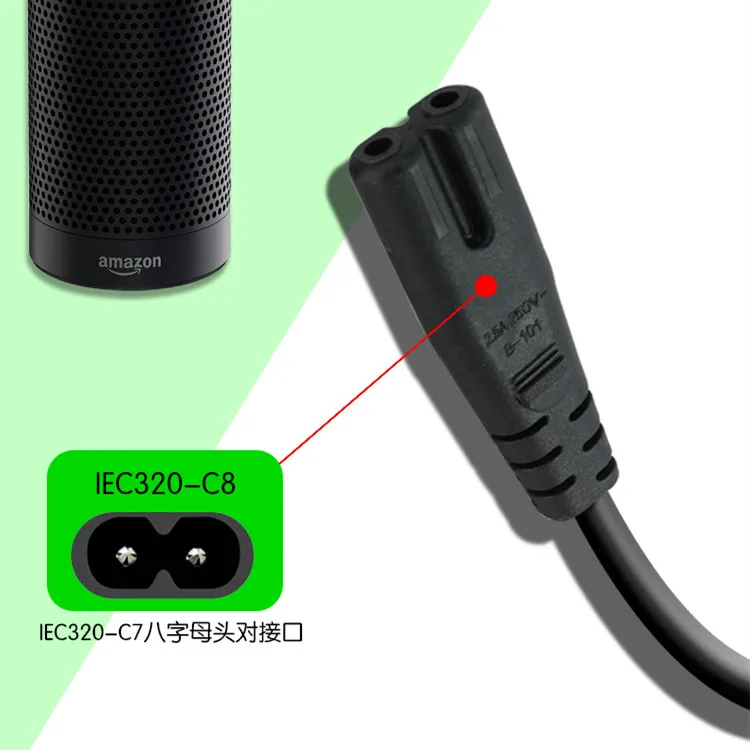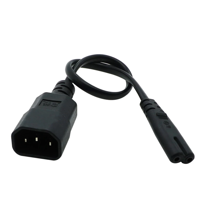 Comprar IEC 320 C14 enchufe macho de 3 pines a figura 8 C7 Cable adaptador de corriente hembra de 2 pines Cable intercambiador IEC C13 a C8 0,2/0,3 m/0,6 m/1m/2m 2.5A