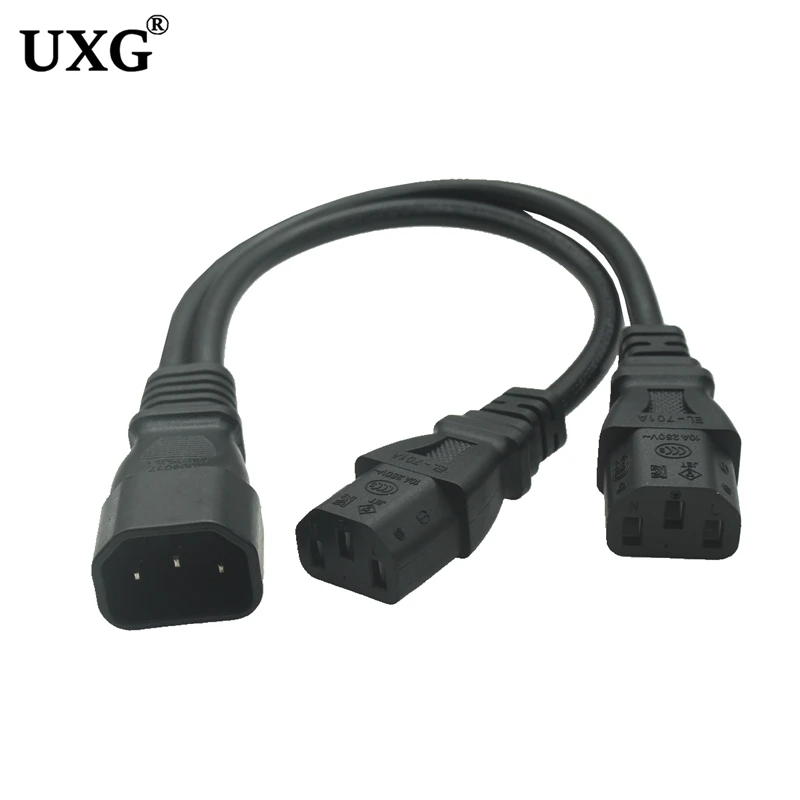 Clasificado hasta 10A CA 250V Enchufe: IEC 320 C14 macho Enchufe: 2X cable adaptador divisor V Nema 5-13R Especificación: 3×0,75 mm2 Longitud del cable: 30 CM Material: cobre libre de oxígeno El enchufe y el enchufe son niquelados.