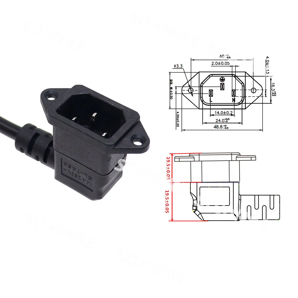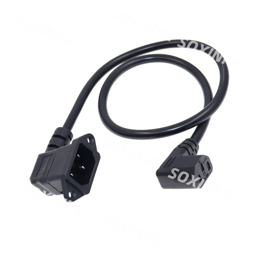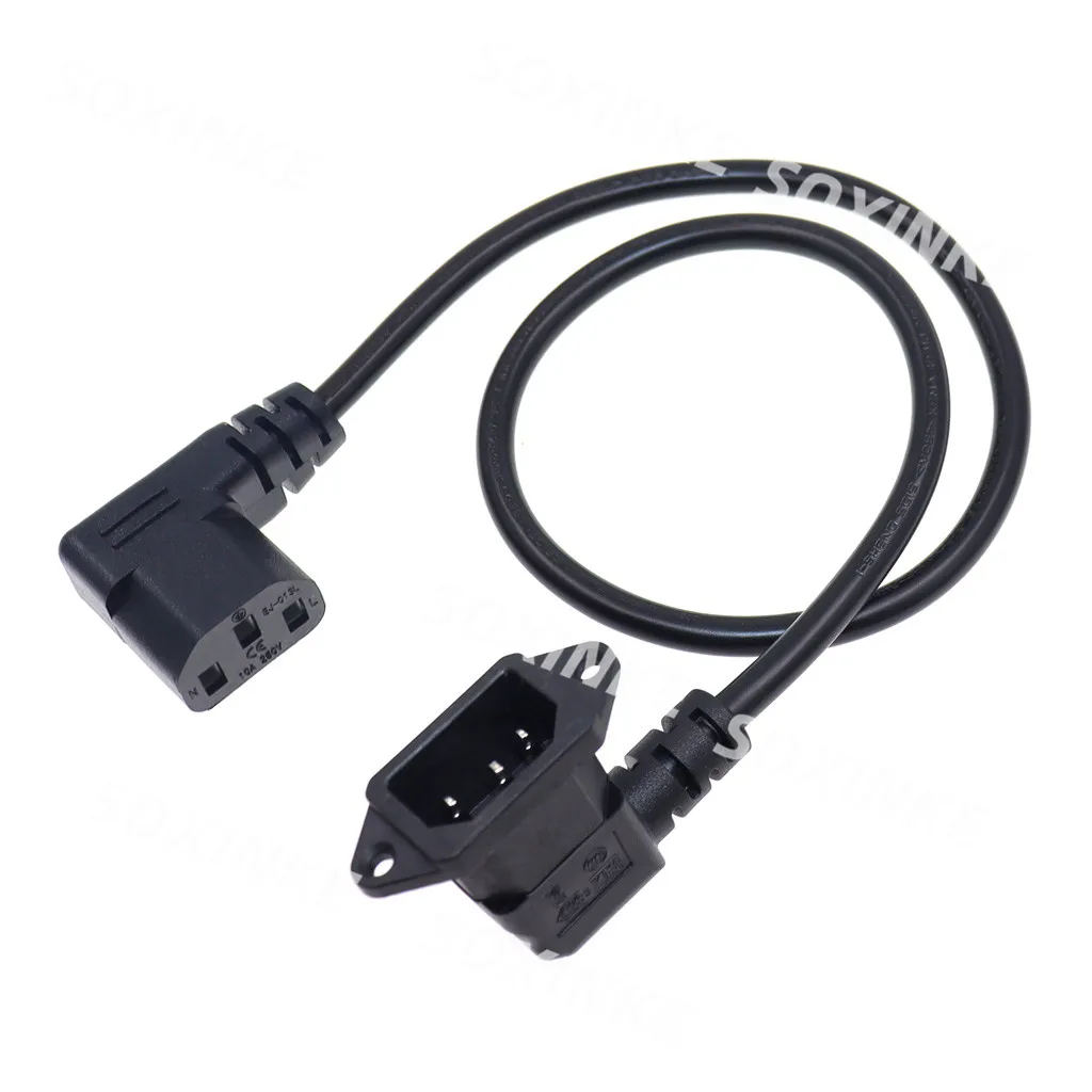 Comprar IEC320 C14 con orificios para tornillos en ángulo recto y C13 en ángulo izquierdo corto, C14 a C13 Cable de extensión de 90 grados H05VV-F de 60 cm de longitud