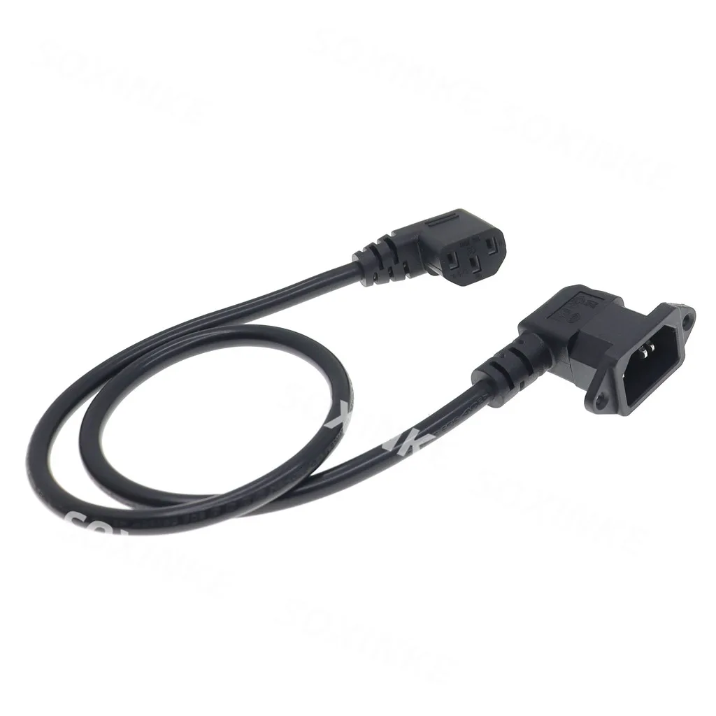 Comprar IEC320 C14 con orificios para tornillos en ángulo recto y C13 en ángulo izquierdo corto, C14 a C13 Cable de extensión de 90 grados H05VV-F de 60 cm de longitud
