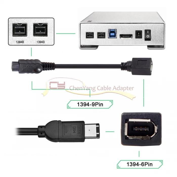 Comprar IEEE 1394 6Pin hembra a 1394b 9Pin macho Firewire 400 a 800 Cable 20cm