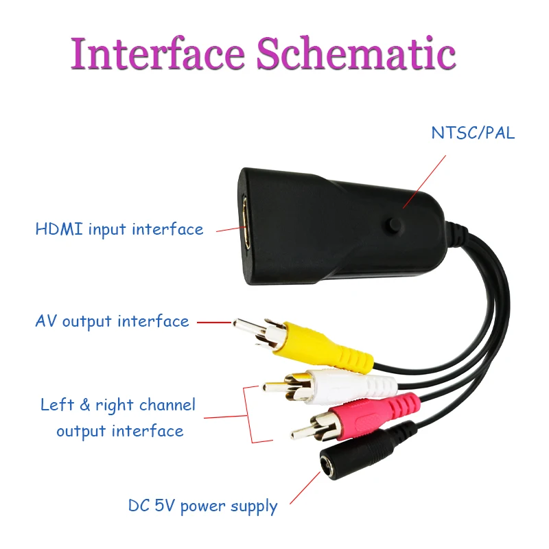 Compatible con HDMIA convertidor de audio y vídeo,Compatible con HDMIA convertidor RCA.Compatible con HDMIA un adaptador de TV más antiguo para TV, VCR VHS, grabadoras de DVD