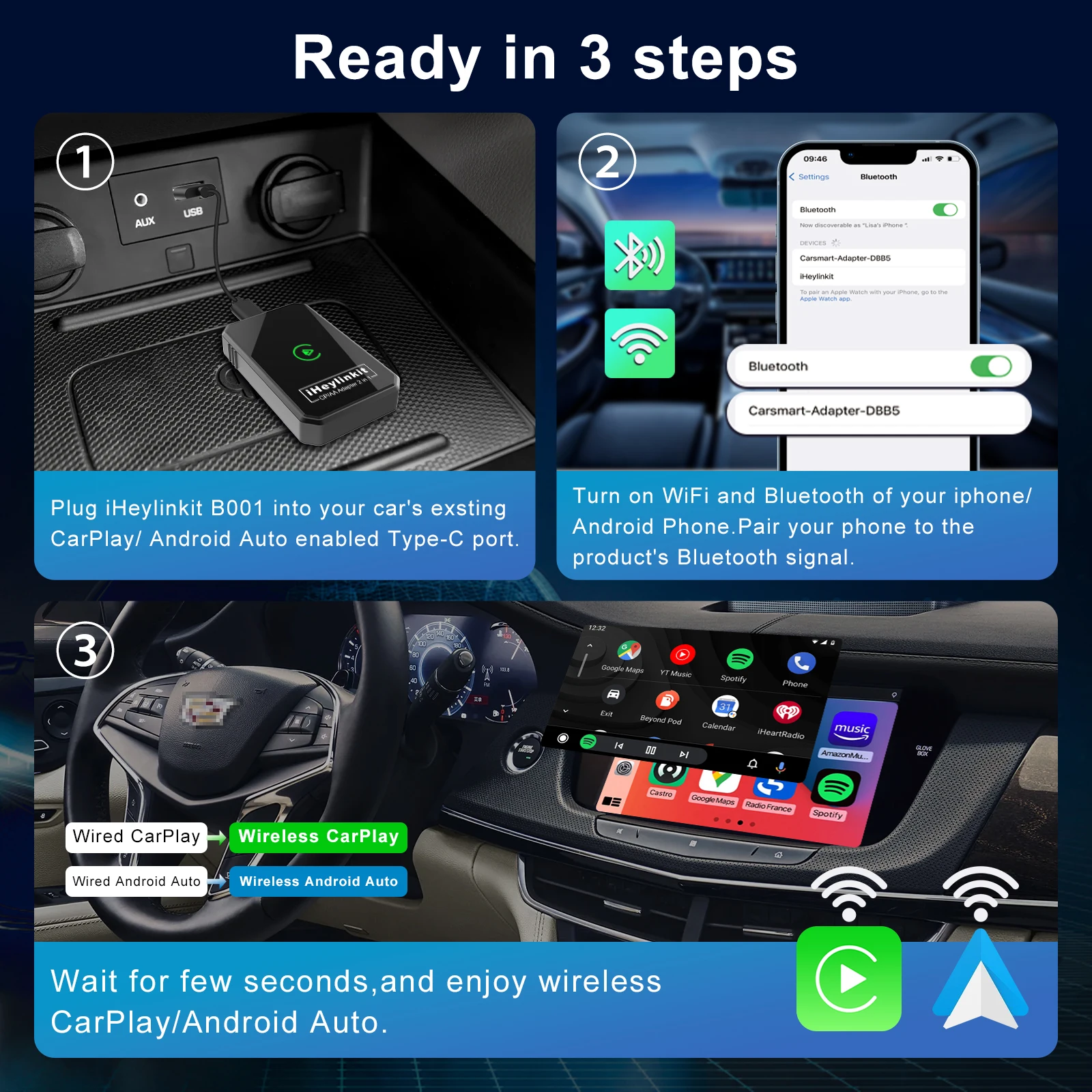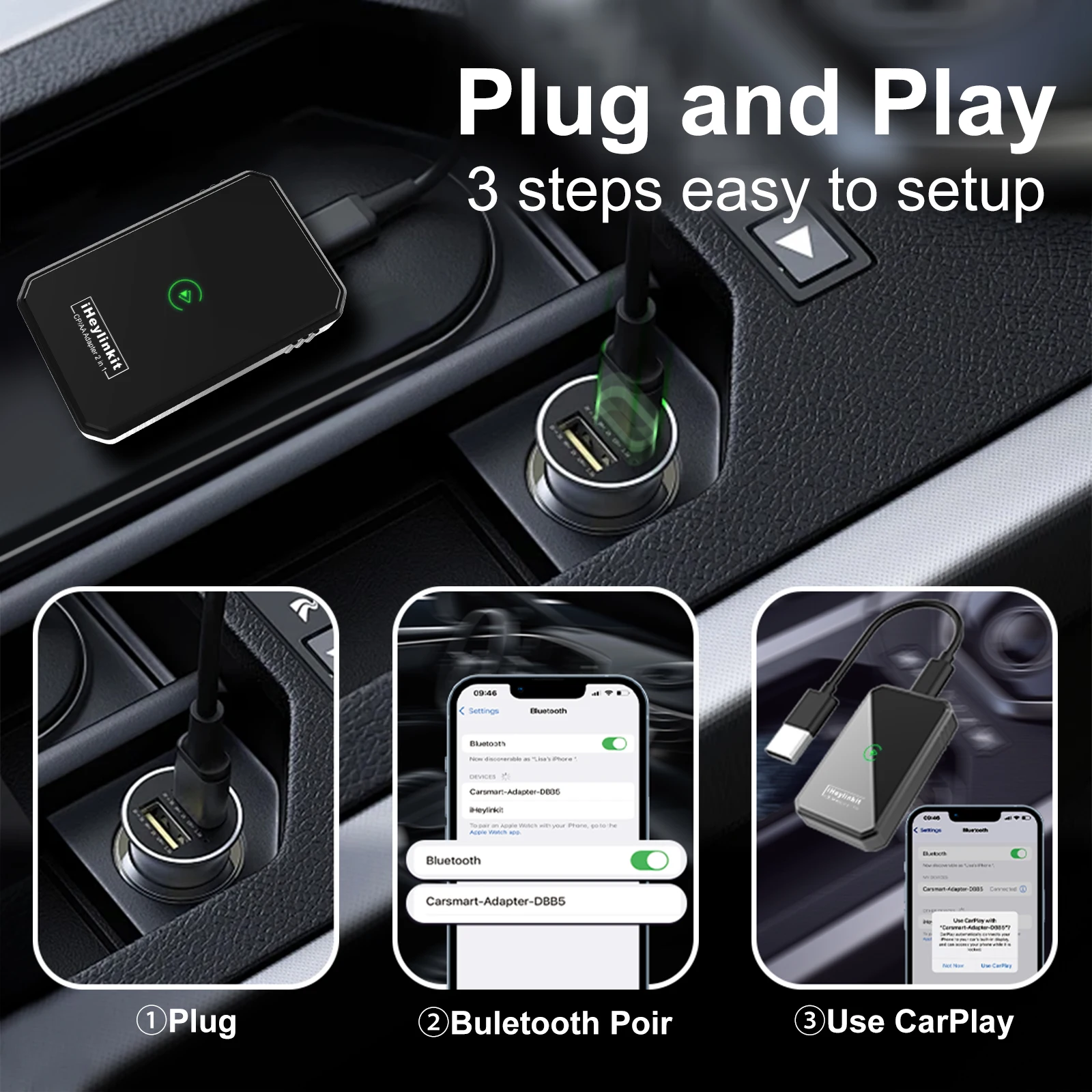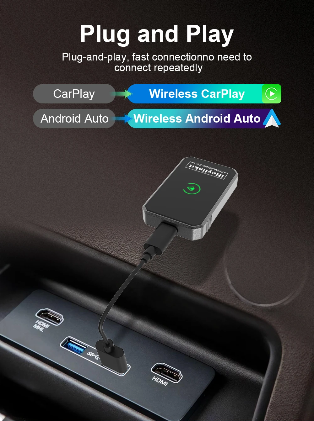 Comprar IHeylinkit 2024 Mini adaptador inalámbrico CarPlay Android Auto Smart AI Box Dongle Plug & Play Bluetooth conexión automática